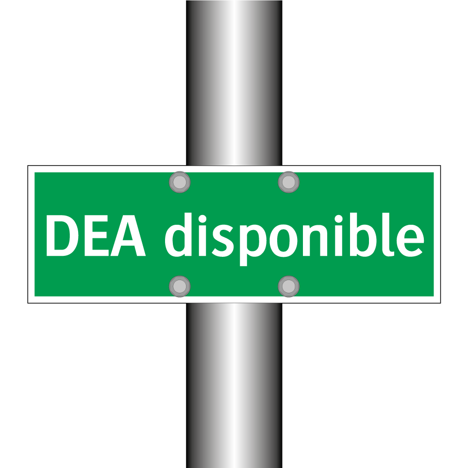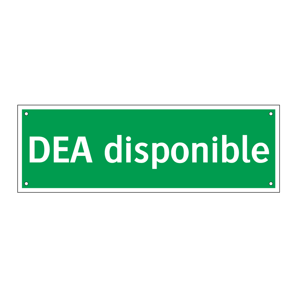 Cette enseigne d'urgence, avec son fond vert et son texte blanc, est idéale pour signaler la disponibilité d'un défibrillateur externe automatisé (DEA) dans des lieux publics. Elle est conçue pour être placée dans des endroits stratégiques tels que les centres commerciaux, les aéroports, les gares et les bureaux, où la rapidité d'accès à un DEA peut sauver des vies. En installant cette signalisation, vous assurez une visibilité optimale et une orientation claire en cas d'urgence médicale. Sa conception simple et efficace garantit qu'elle attire immédiatement l'attention, facilitant ainsi une intervention rapide.