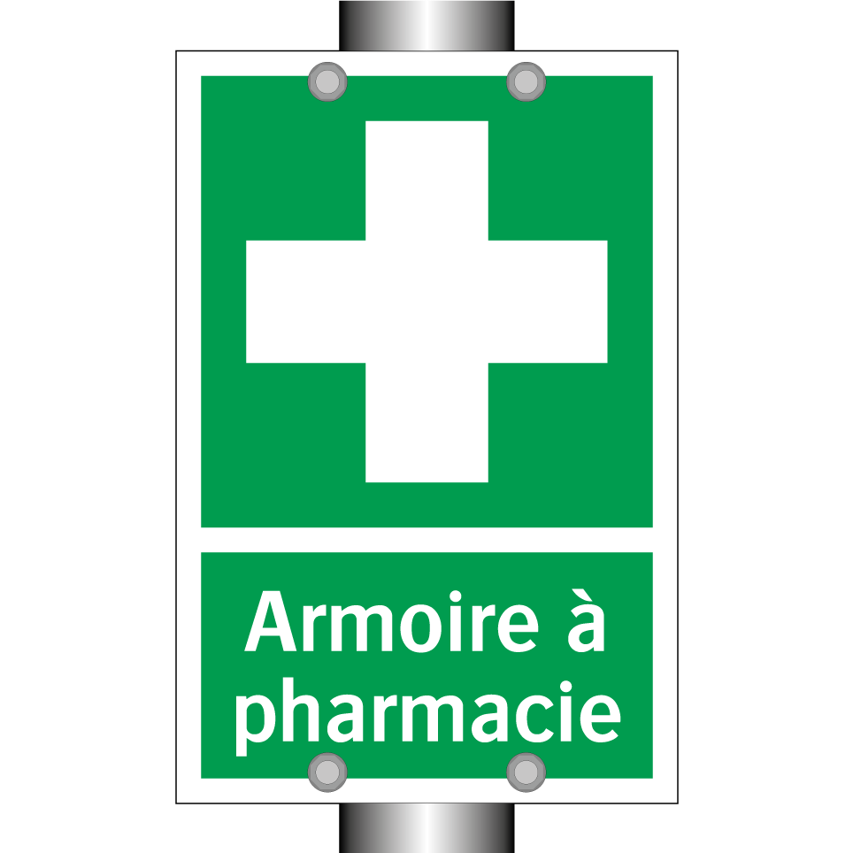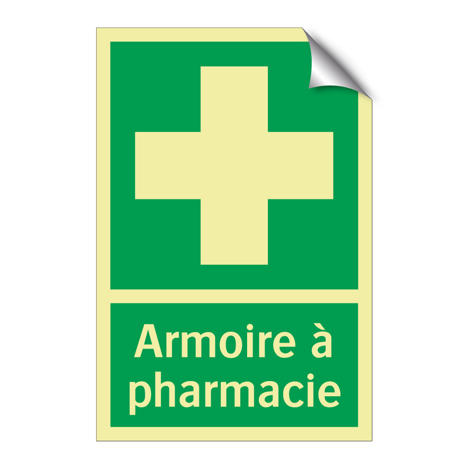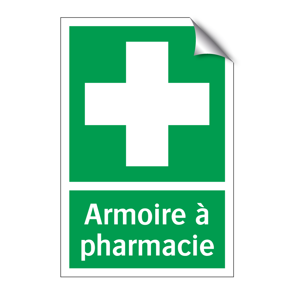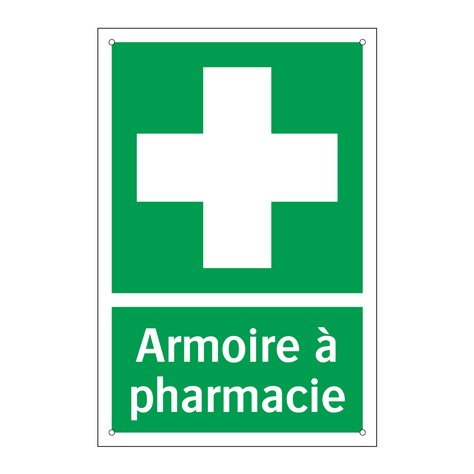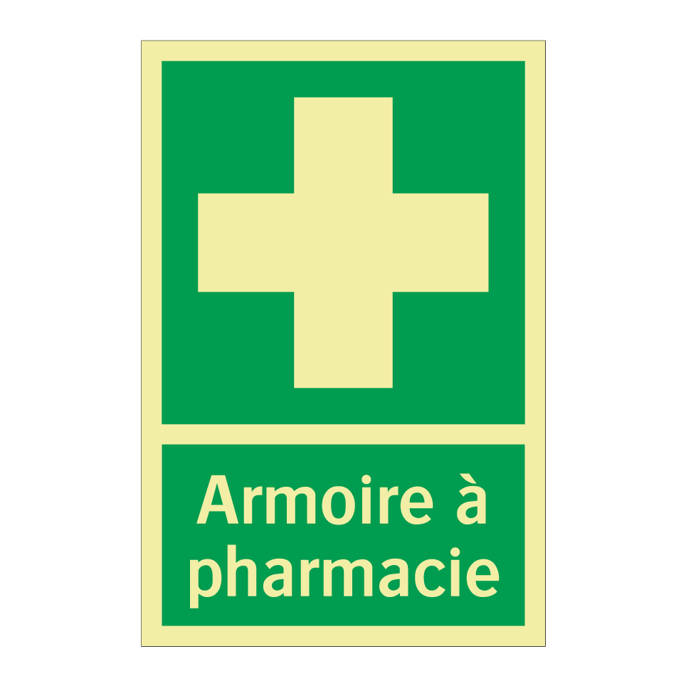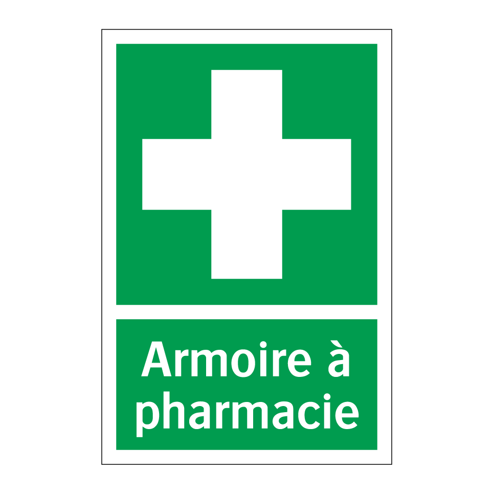 Panneau de secours avec le texte Armoire à pharmacie et une symbolique claire