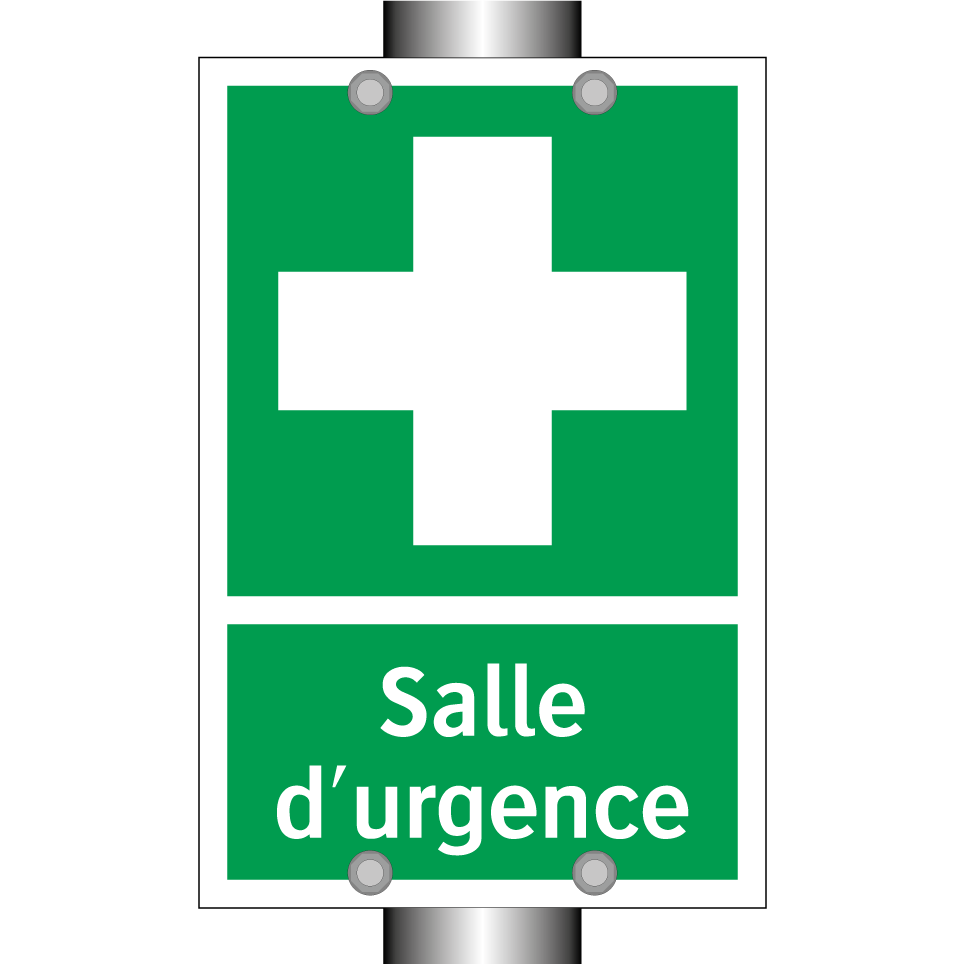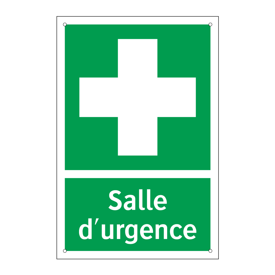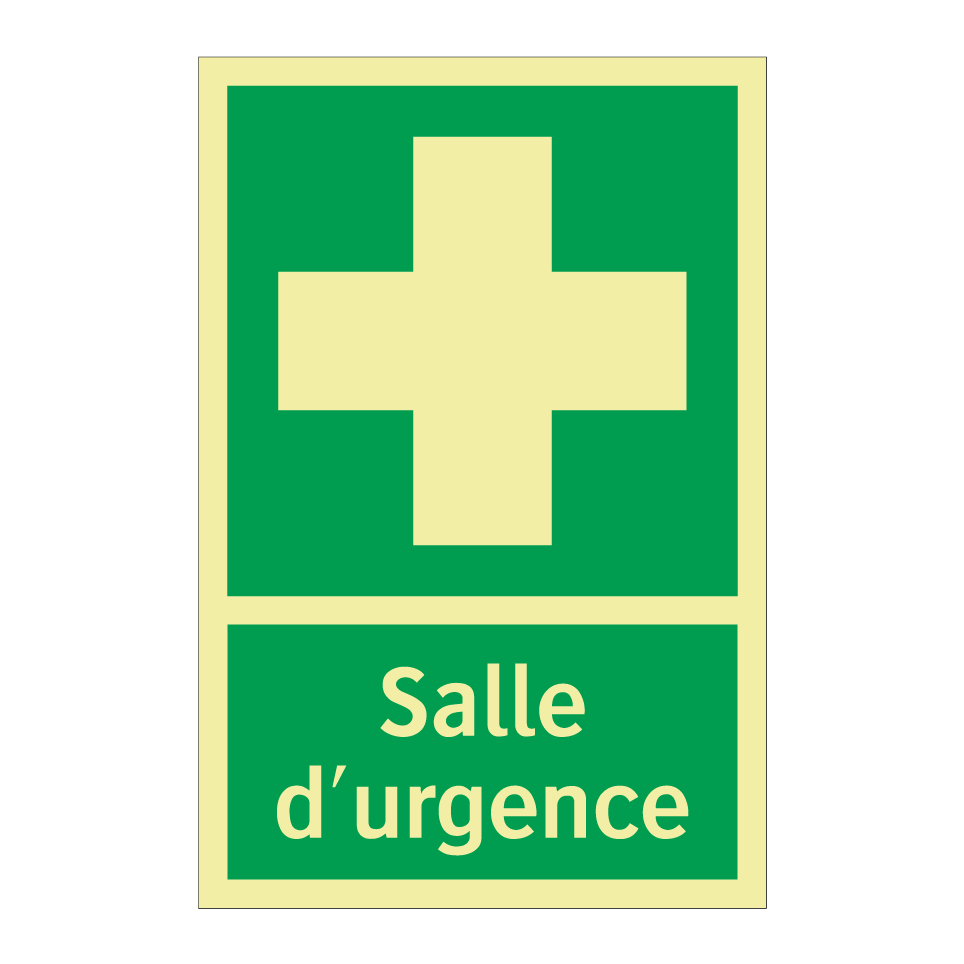 Panneau de secours avec le texte Salle d'urgence et une symbolique claire