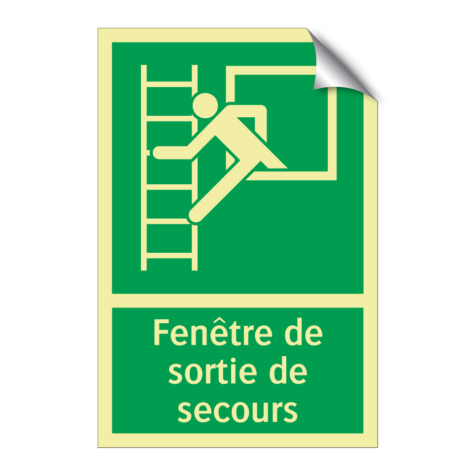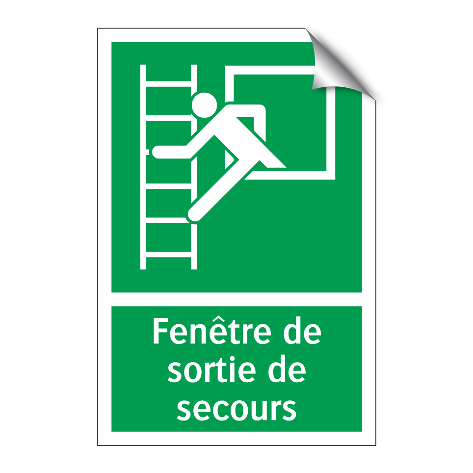 Panneau de secours avec le texte Fenêtre de sortie de secours et une symbolique claire