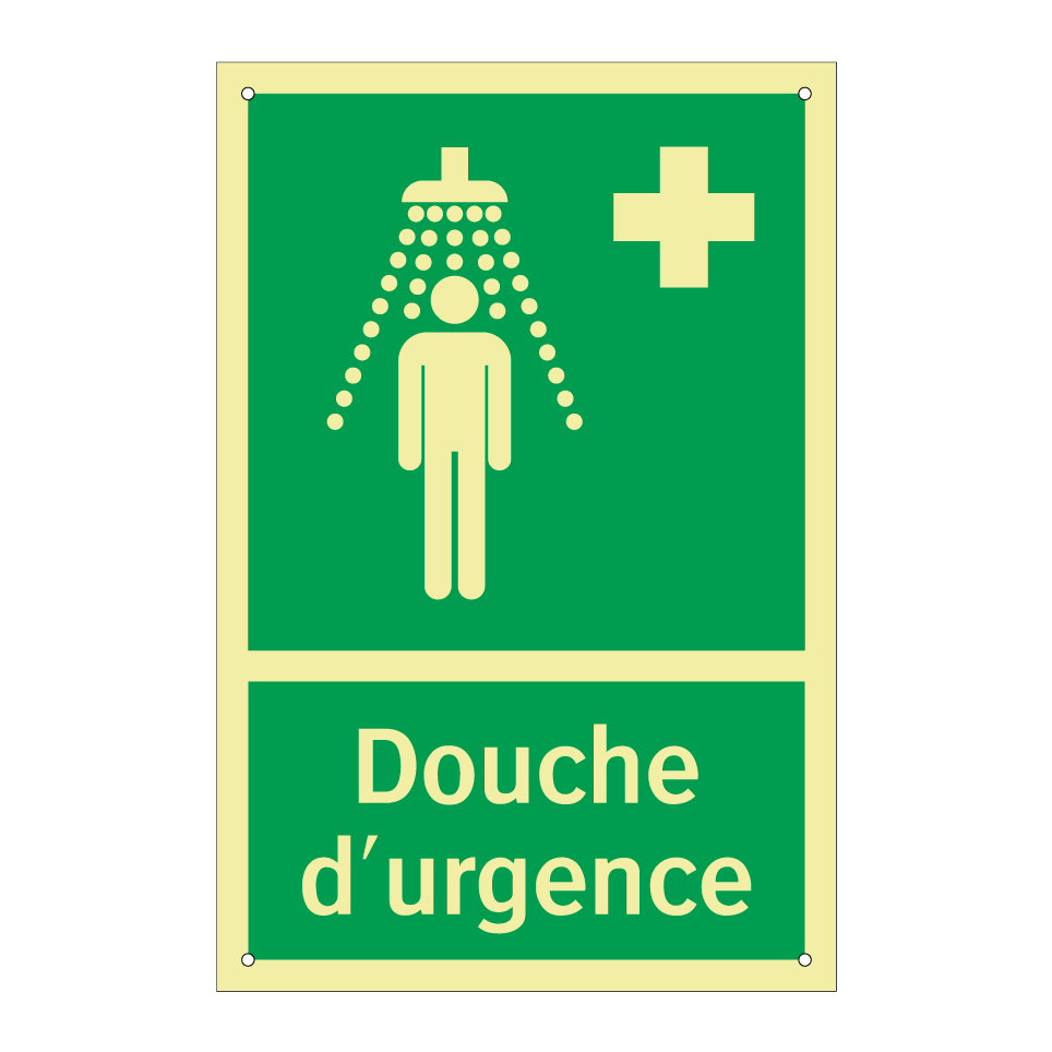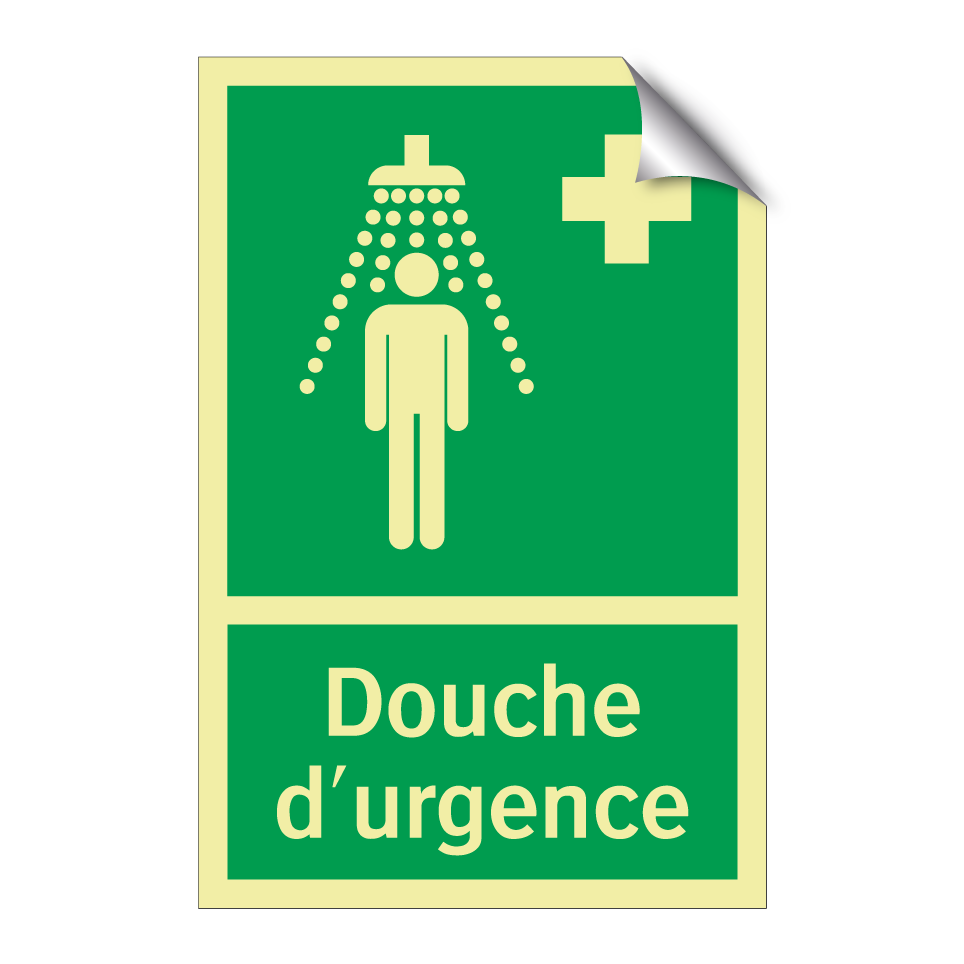 Panneau de secours avec le texte Douche d'urgence et une symbolique claire