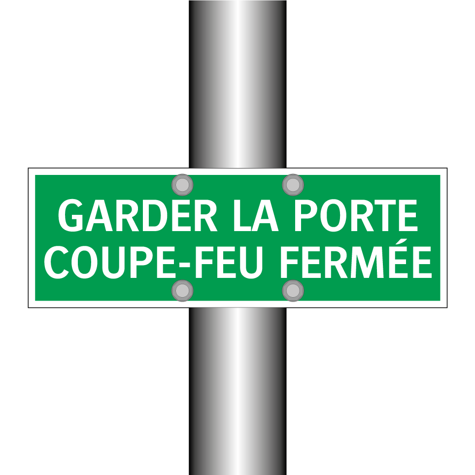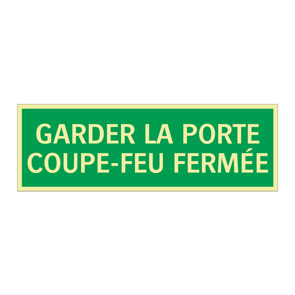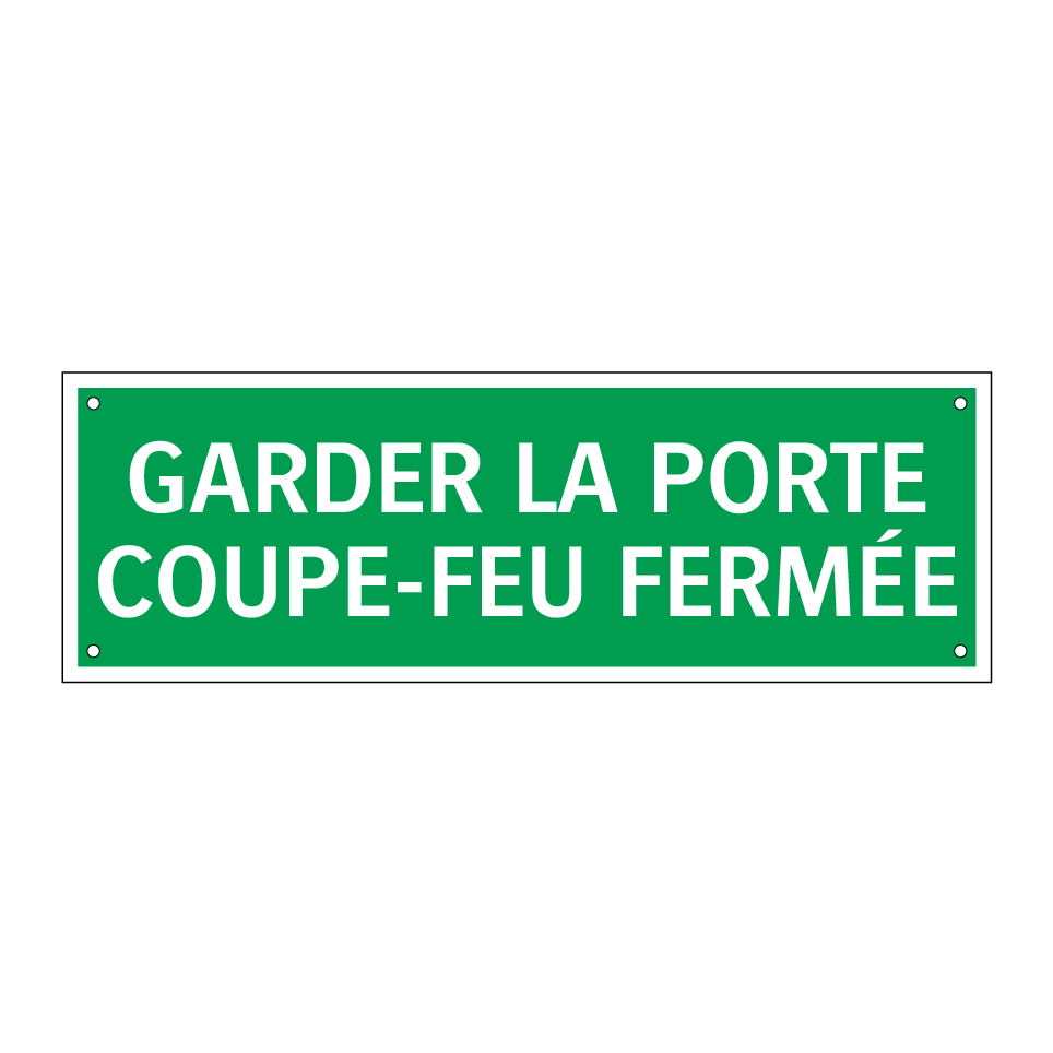 Panneau de secours avec le texte GARDER LA PORTE COUPE-FEU FERMÉE