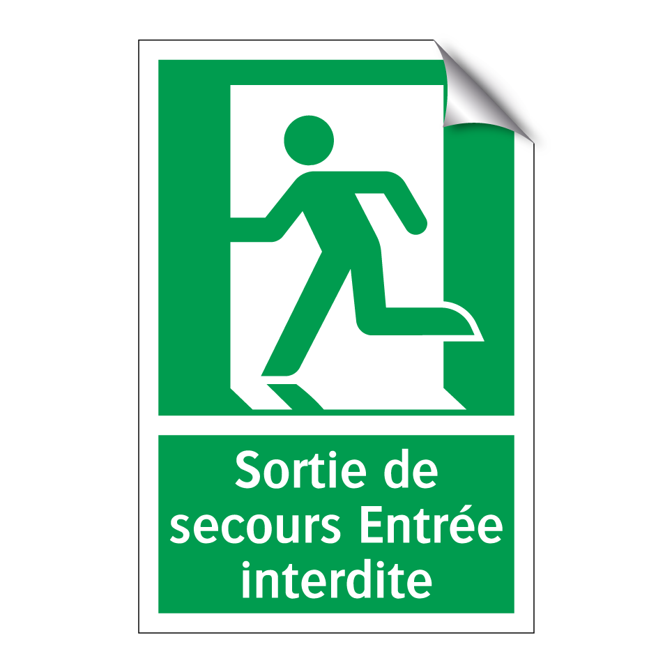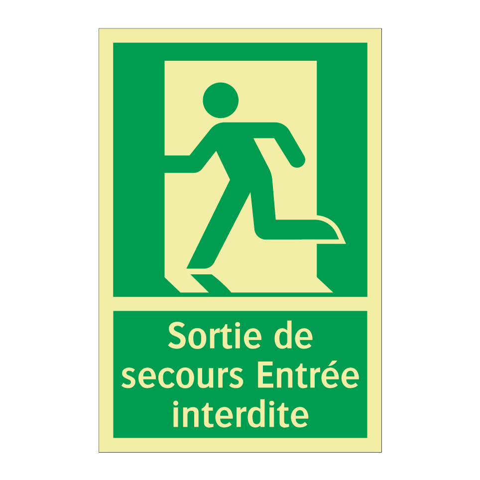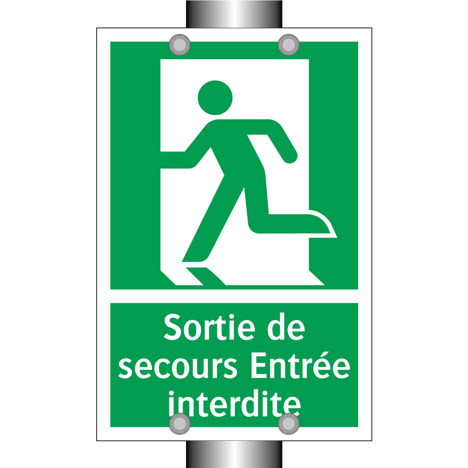 Panneau de secours avec le texte Sortie de secours Entrée interdite et une symbolique claire