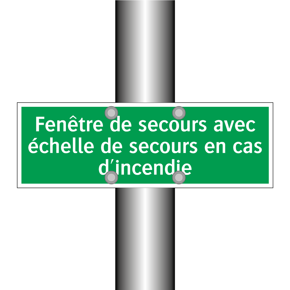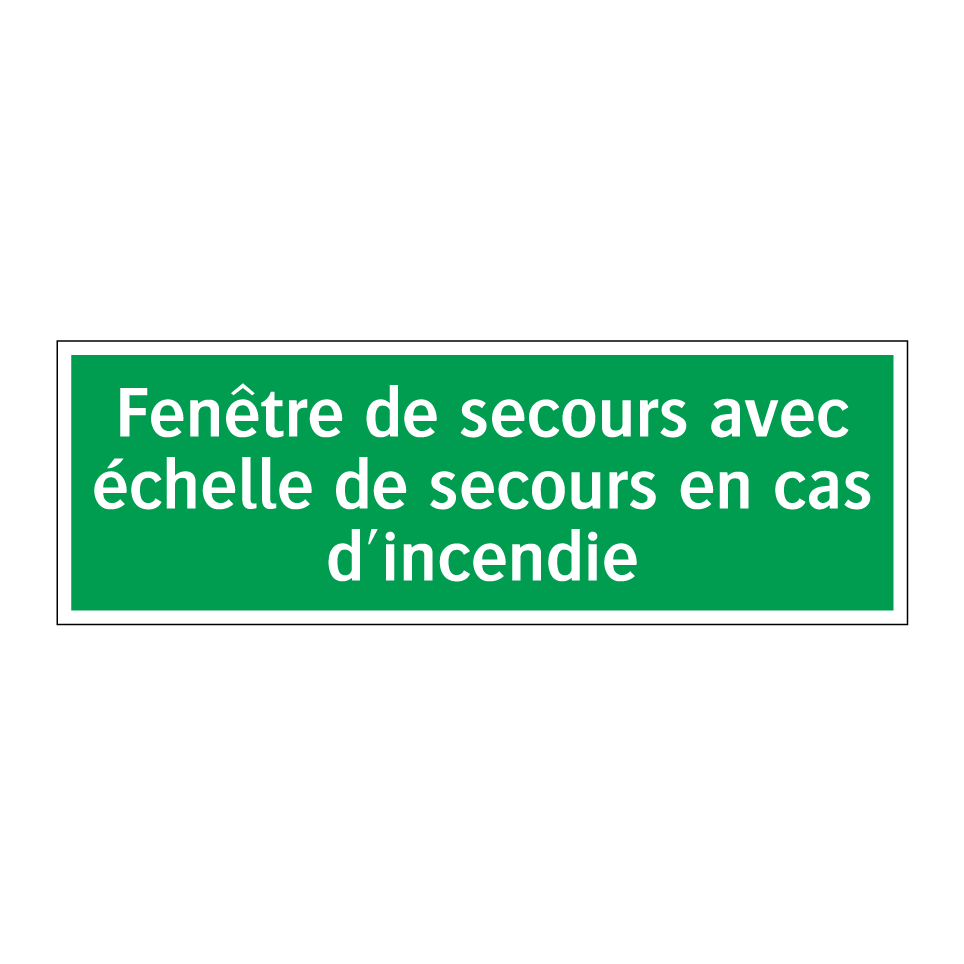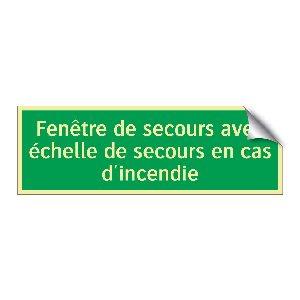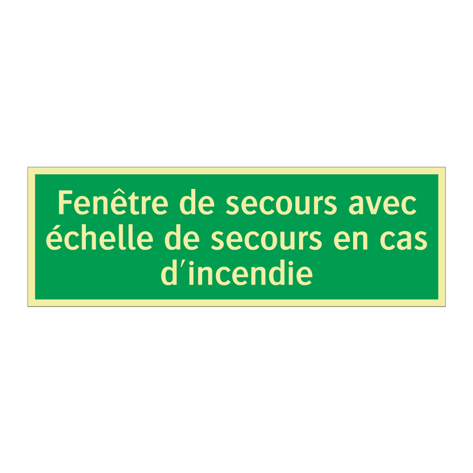 Panneau de secours avec le texte Fenêtre de secours avec échelle de secours en cas d'incendie