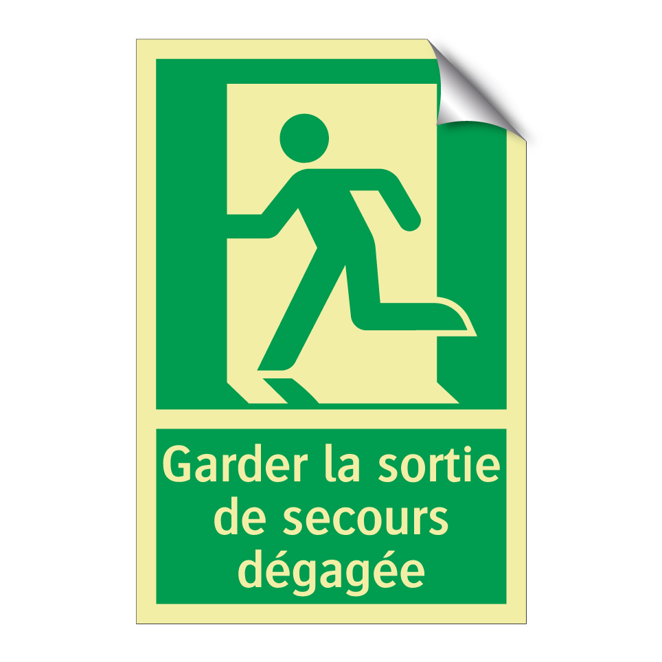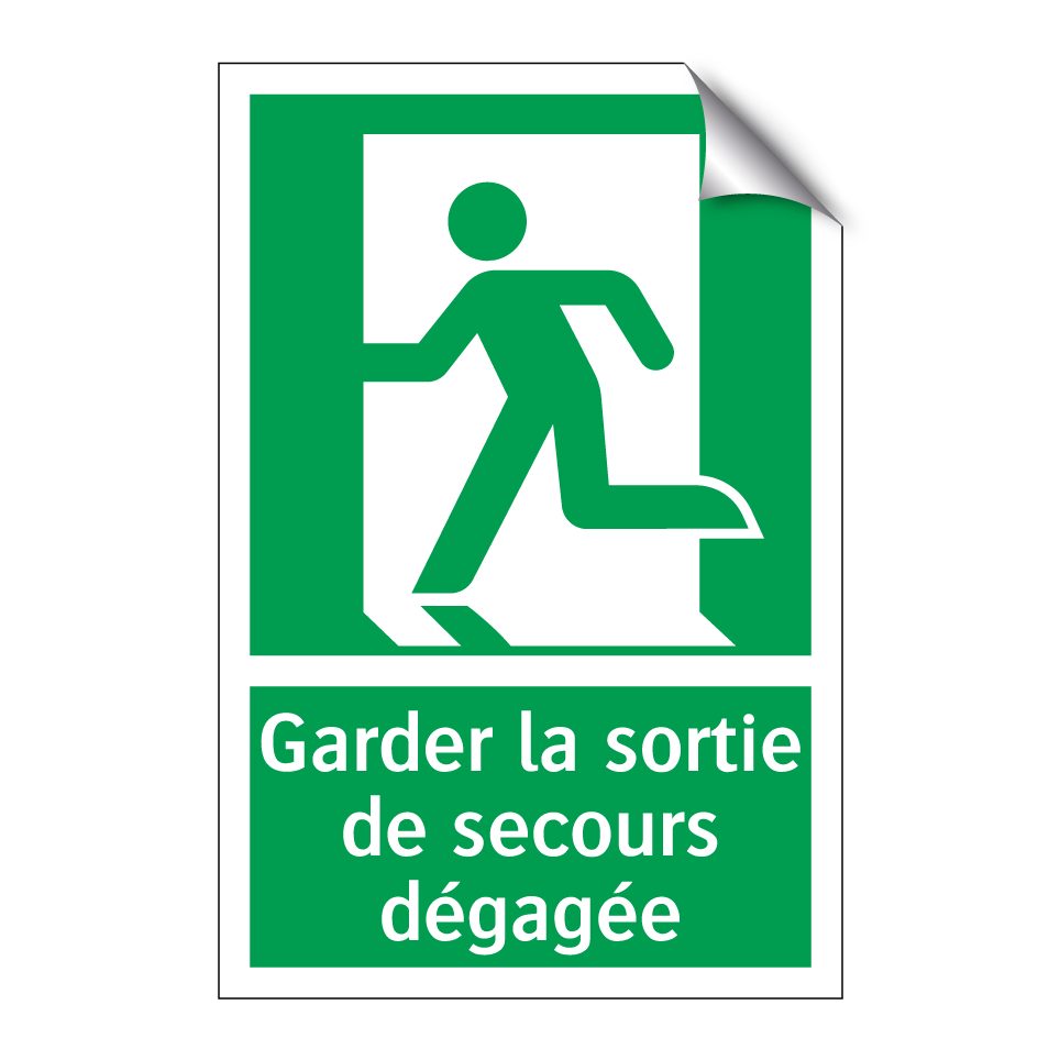 Panneau de secours avec le texte Garder la sortie de secours dégagée et une symbolique claire