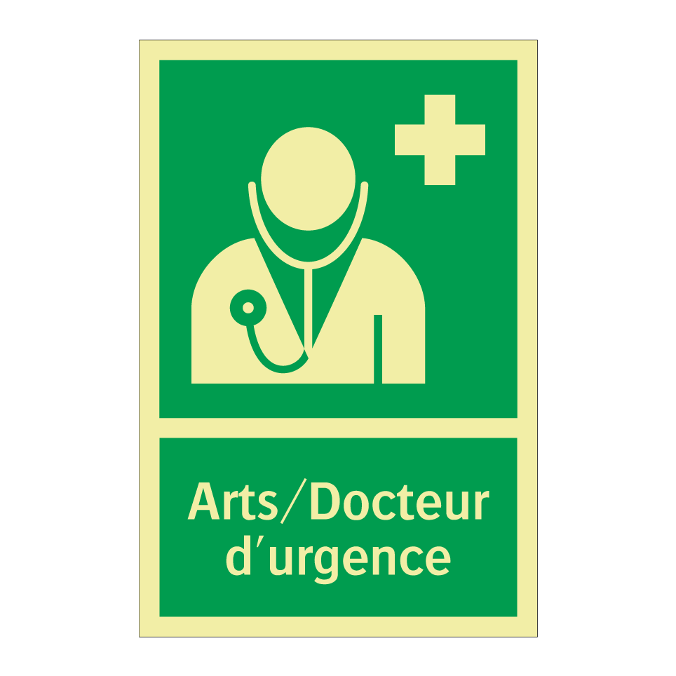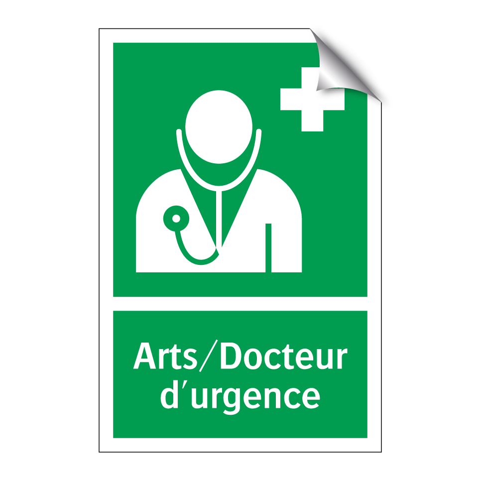 Panneau de secours avec le texte Arts/Docteur d'urgence et une symbolique claire
