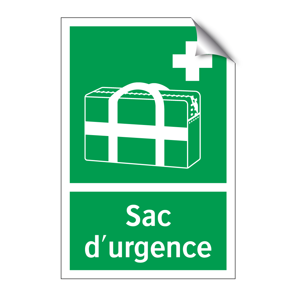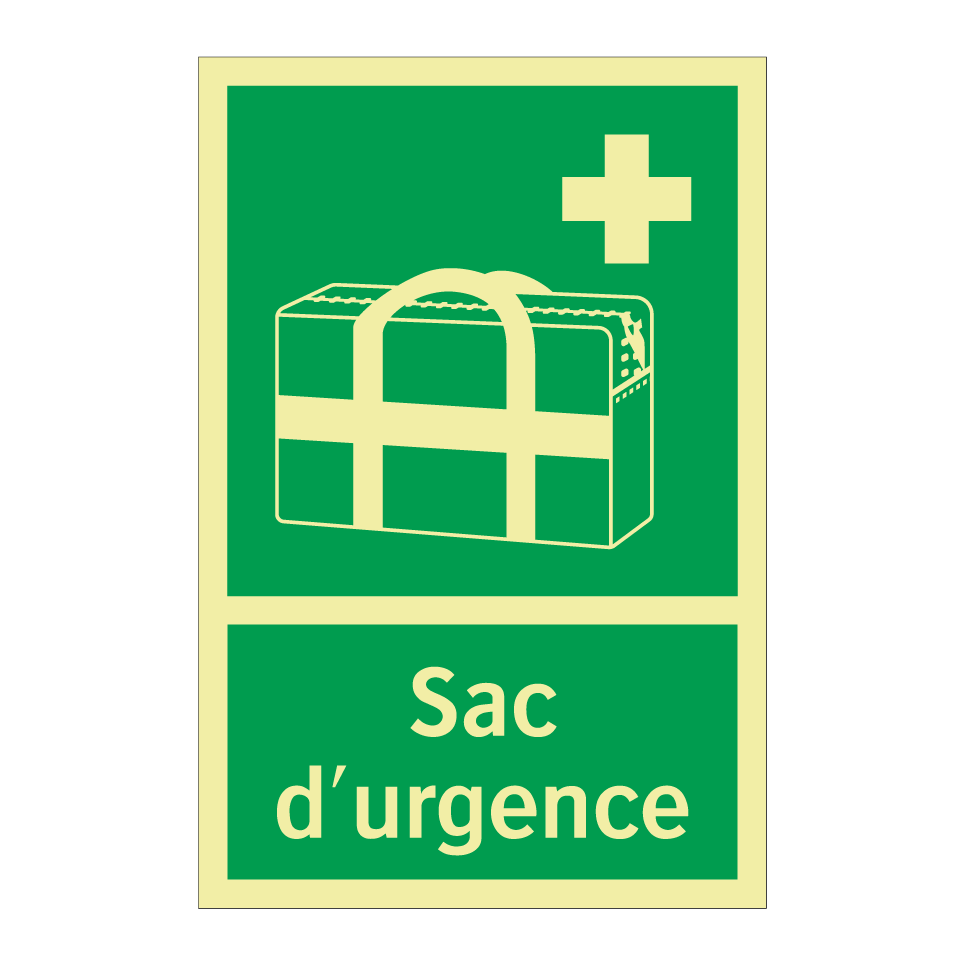 Panneau de secours avec le texte Sac d'urgence et une symbolique claire