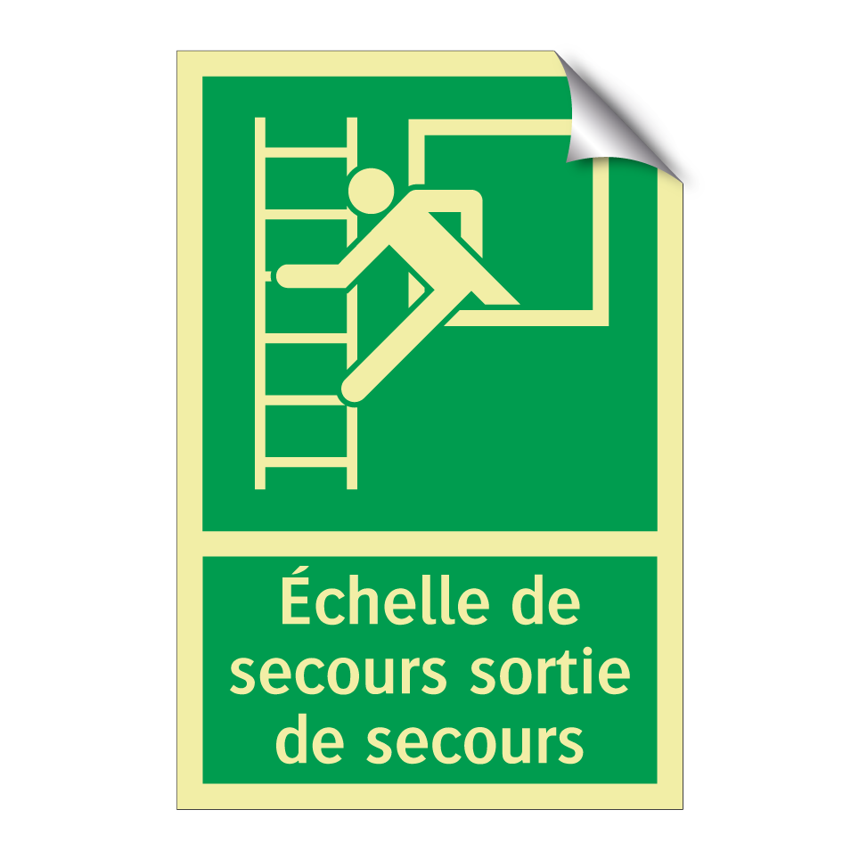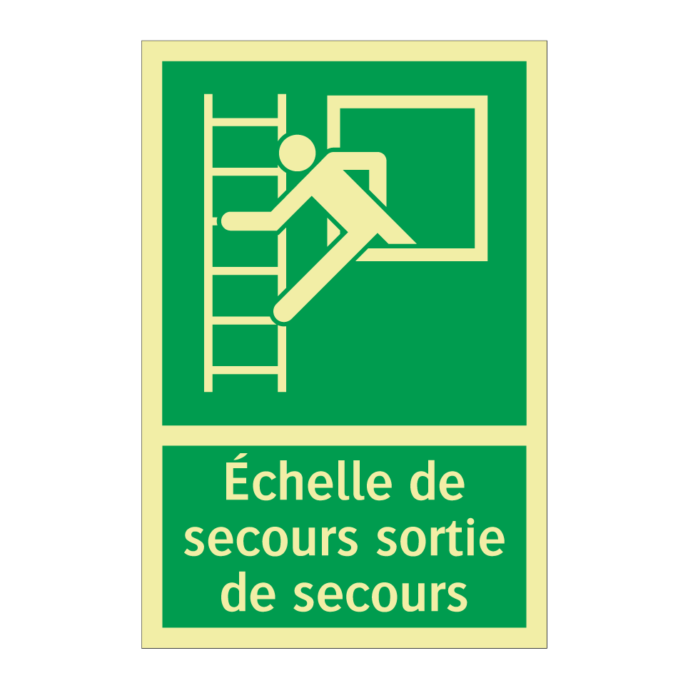 Panneau de secours avec le texte Échelle de secours sortie de secours et une symbolique claire
