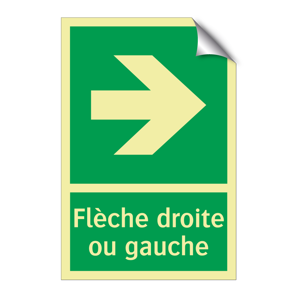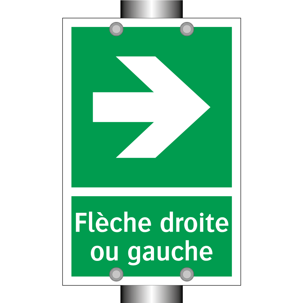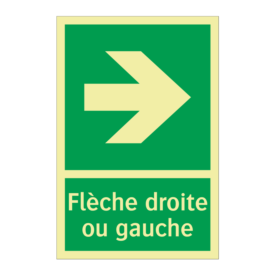 Panneau de secours avec le texte Flèche droite ou gauche et une symbolique claire