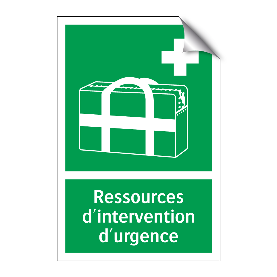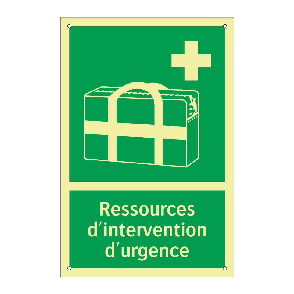 Panneau de secours avec le texte Ressources d'intervention d'urgence et une symbolique claire