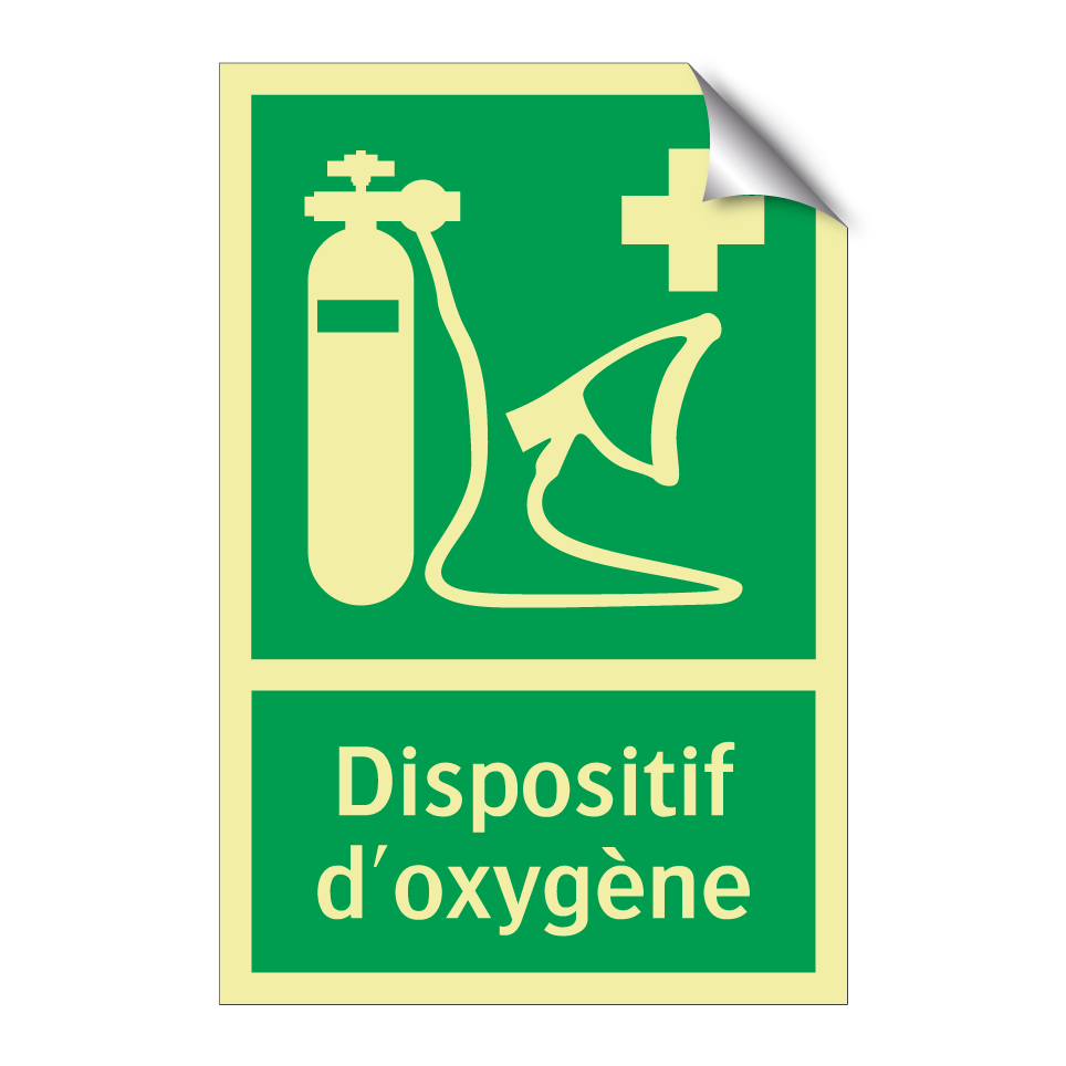 Panneau de secours avec le texte Dispositif d'oxygène et une symbolique claire