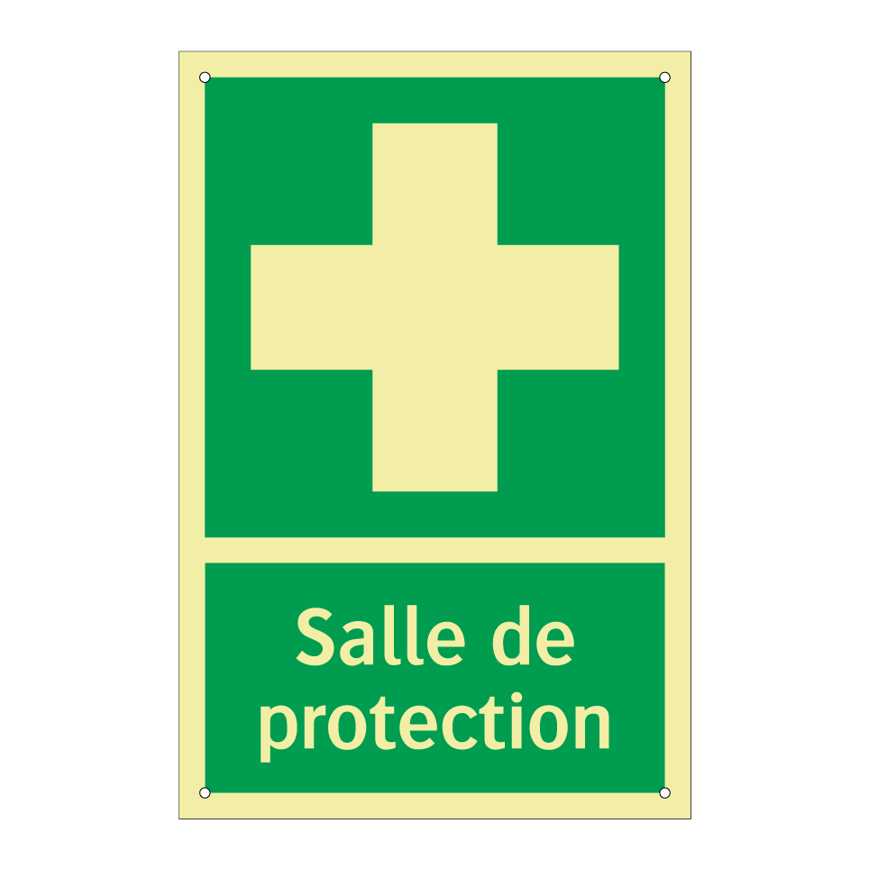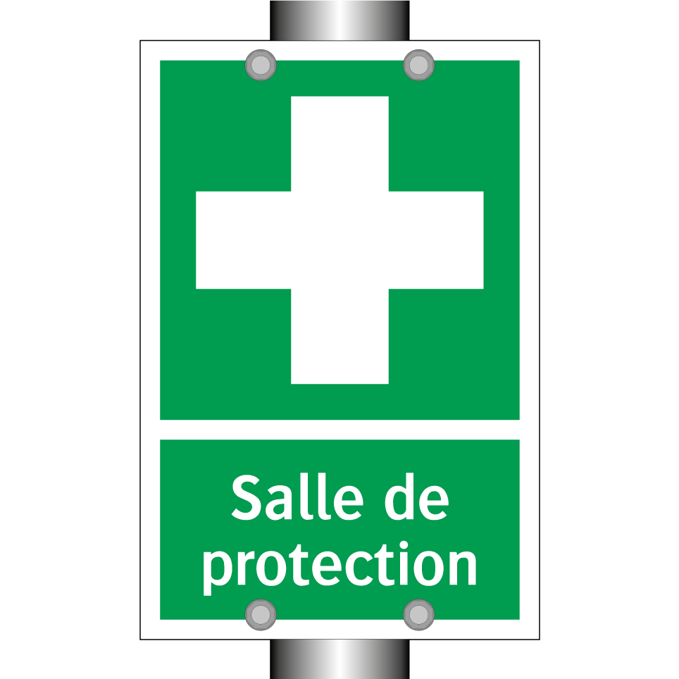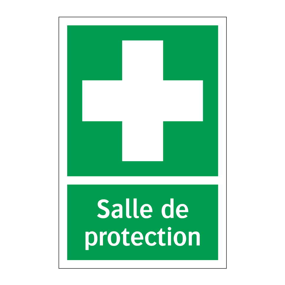Panneau de secours avec le texte Salle de protection et une symbolique claire