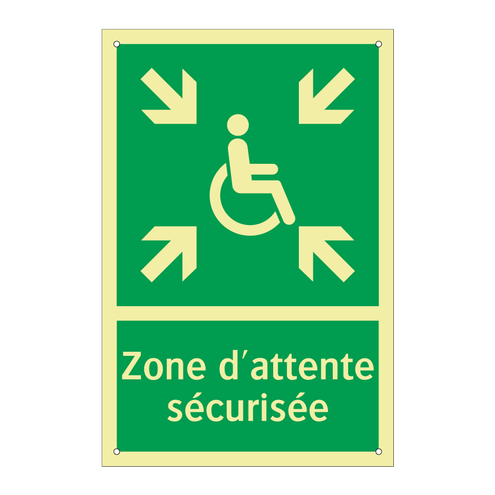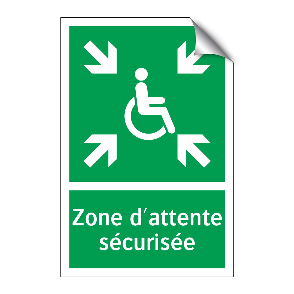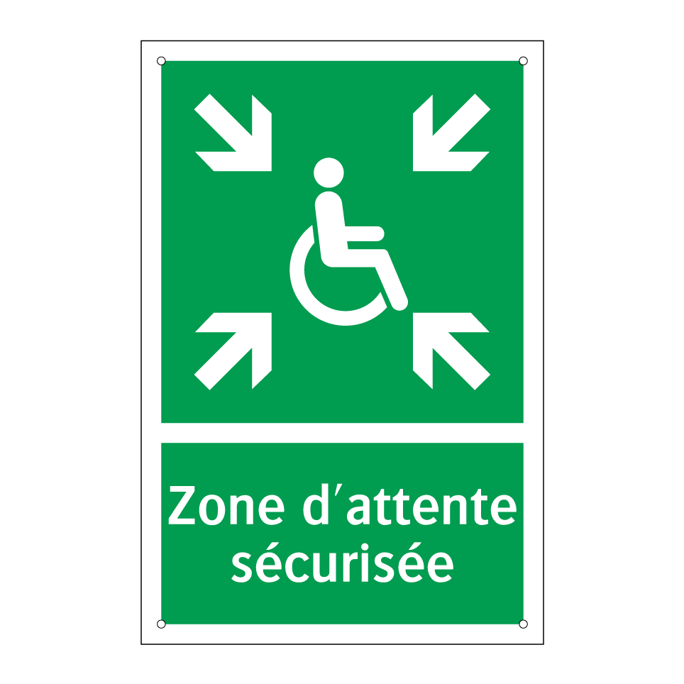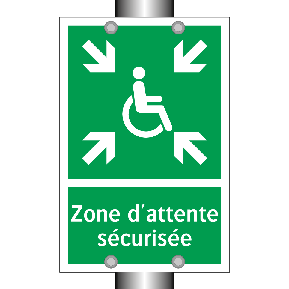 Panneau de secours avec le texte Zone d'attente sécurisée et une symbolique claire