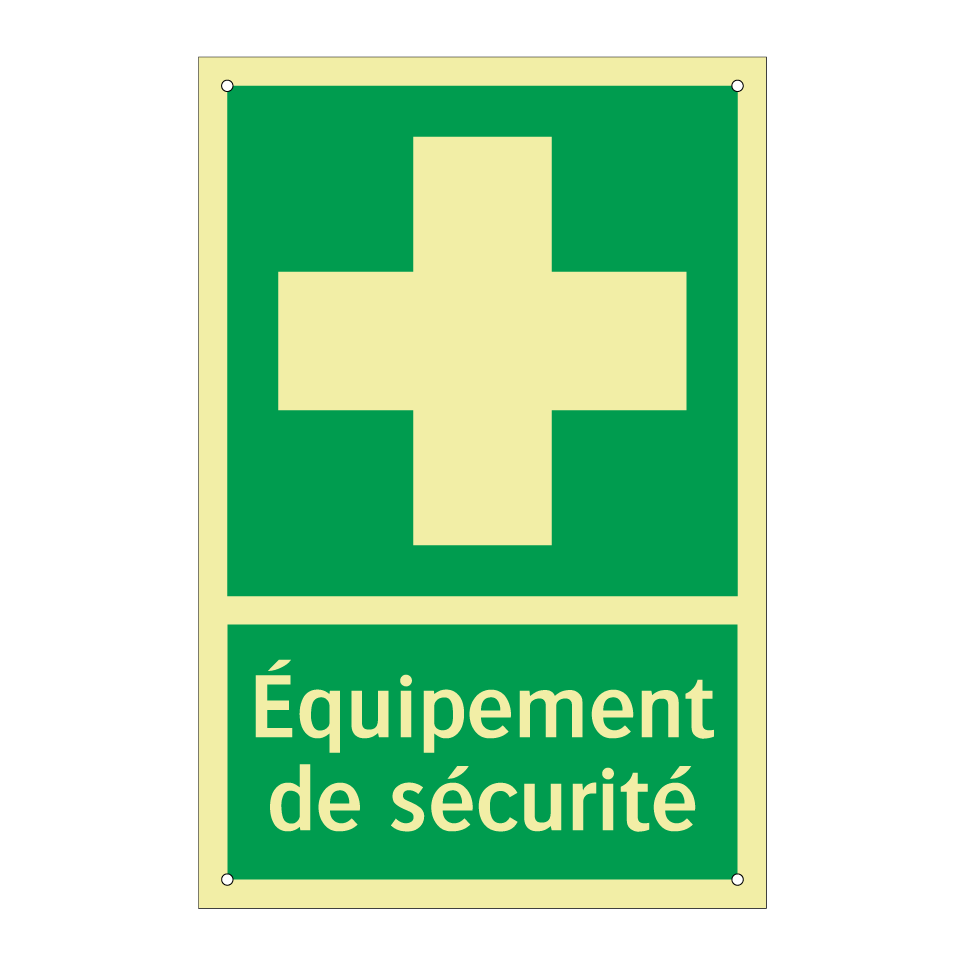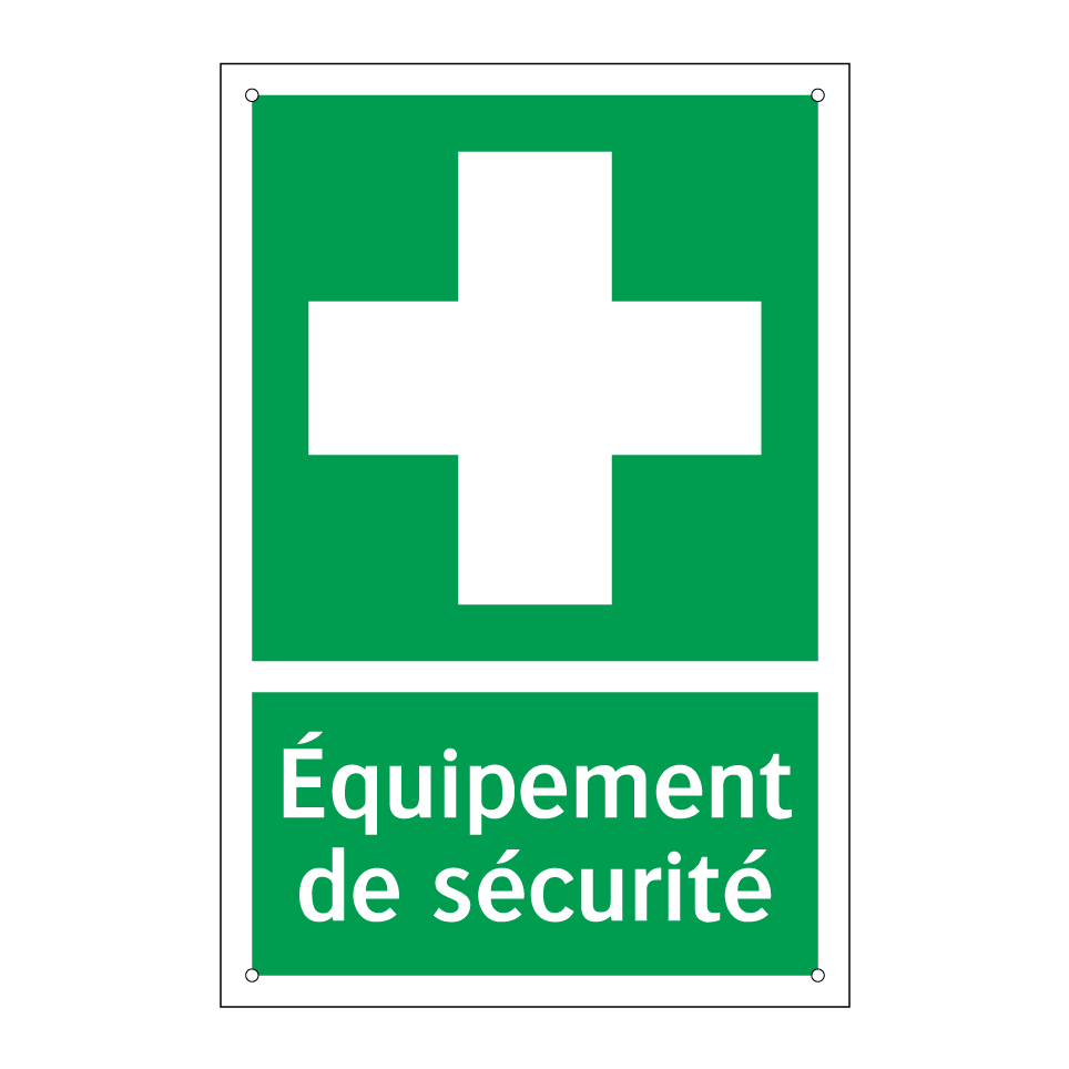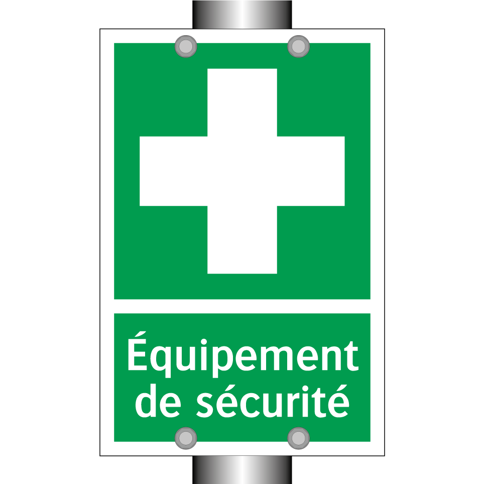 Panneau de secours avec le texte Équipement de sécurité et une symbolique claire