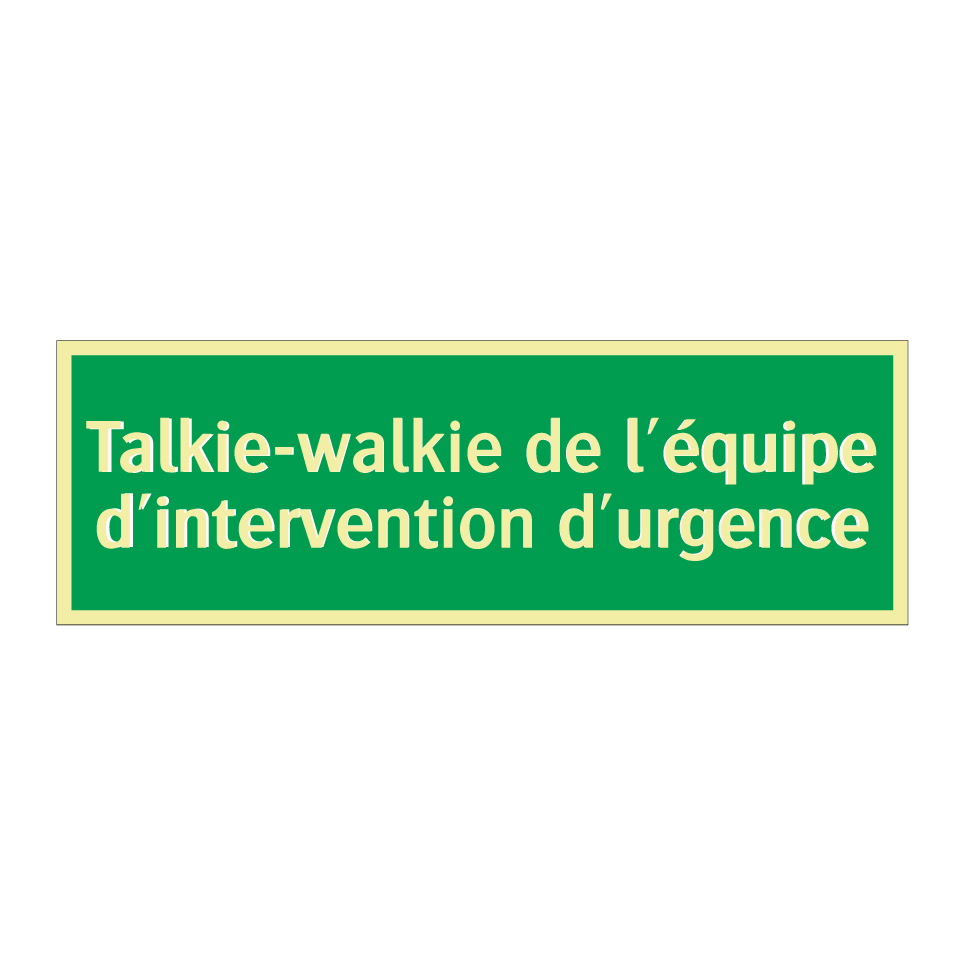 Panneau de secours avec le texte Talkie-walkie de l'équipe d'intervention d'urgence