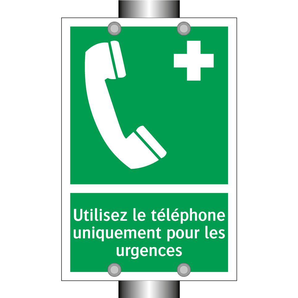 Panneau de secours avec le texte Utilisez le téléphone uniquement pour les urgences et une symbolique claire