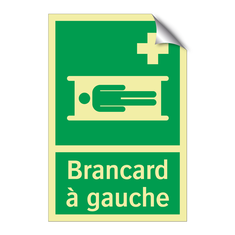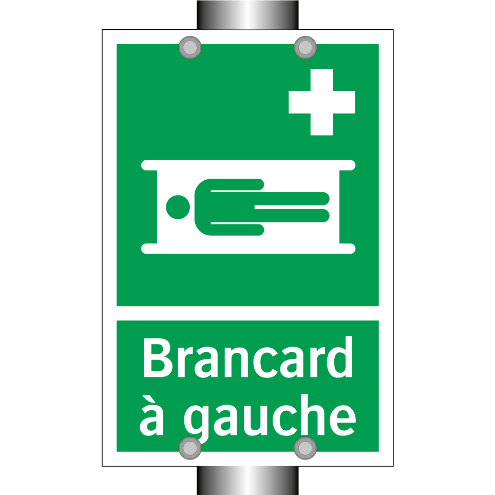 Panneau de secours avec le texte Brancard à gauche et une symbolique claire