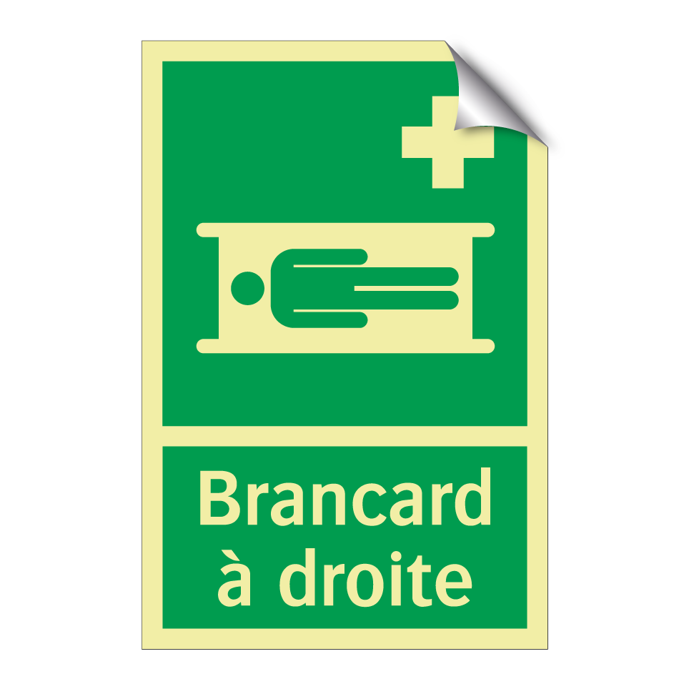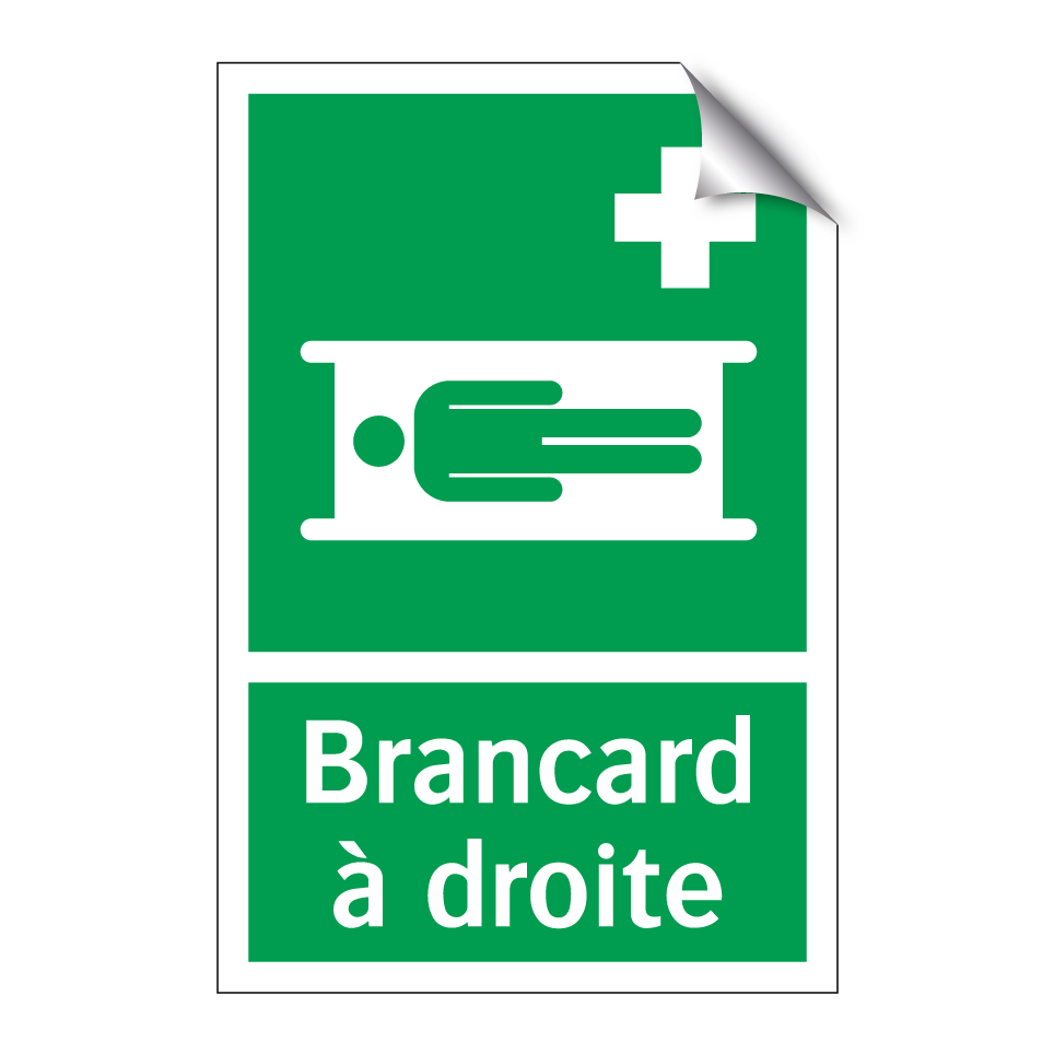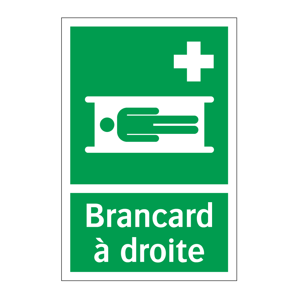 Panneau de secours avec le texte Brancard à droite et une symbolique claire