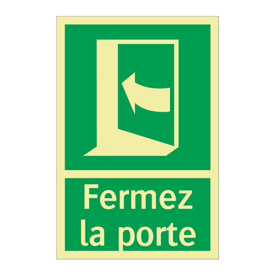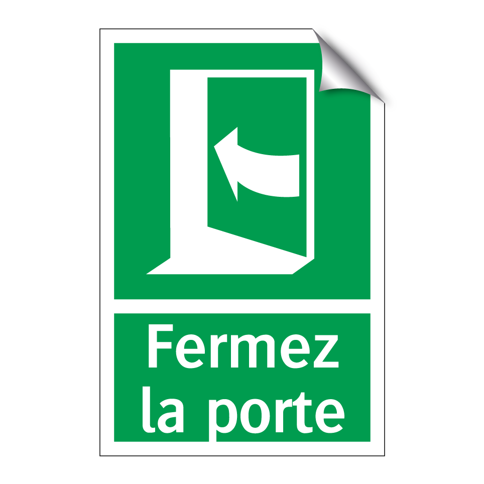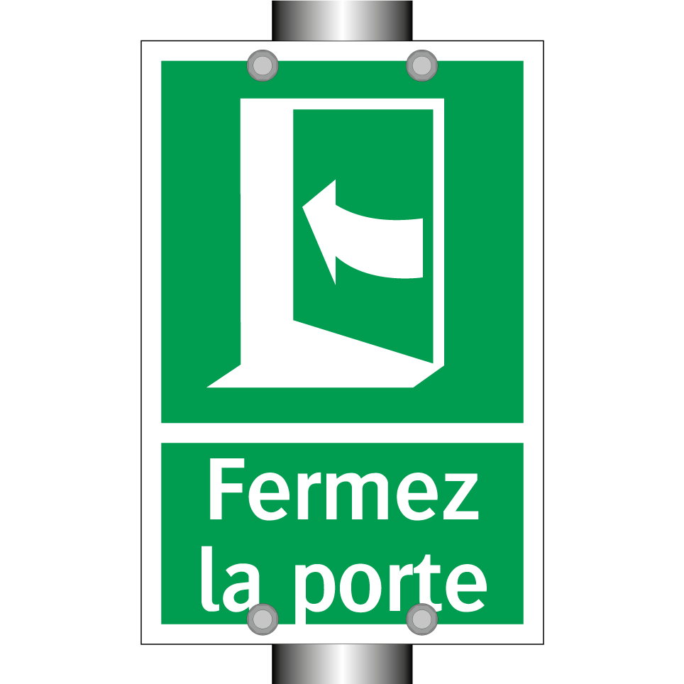 Panneau de secours avec le texte Fermez la porte et une symbolique claire