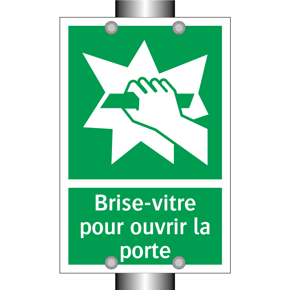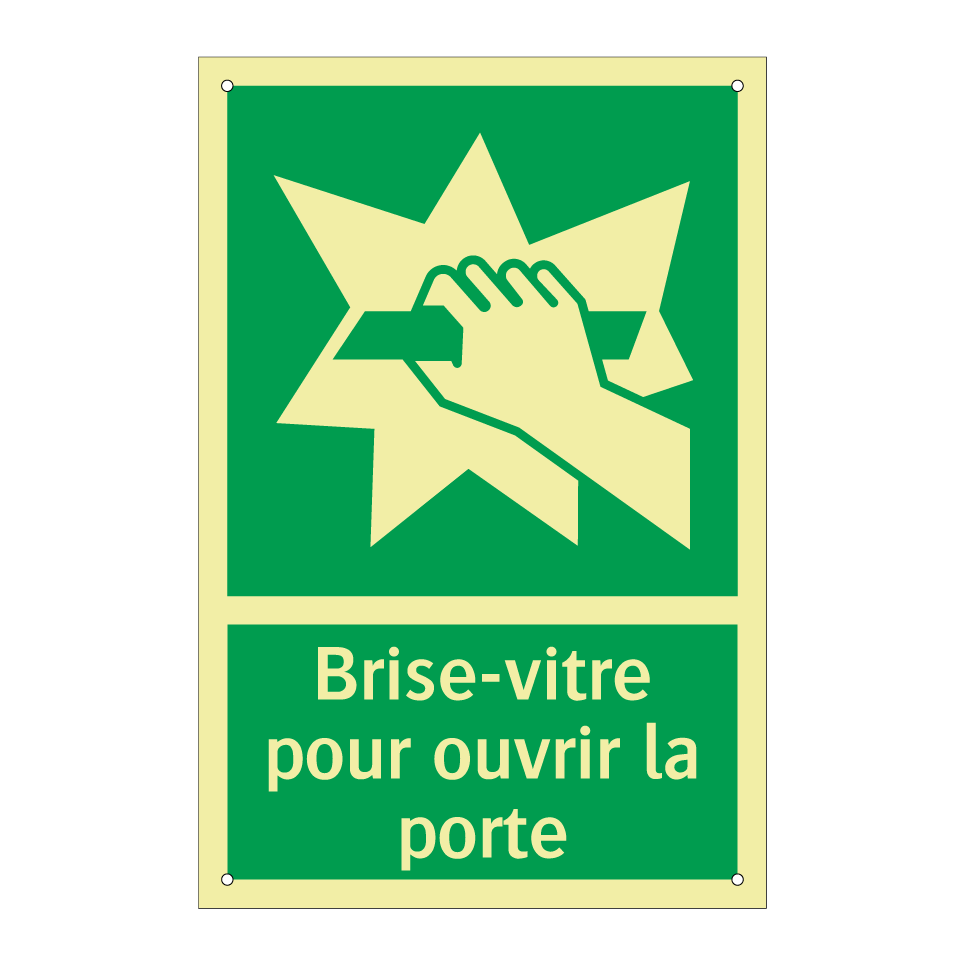 Panneau de secours avec le texte Brise-vitre pour ouvrir la porte et une symbolique claire