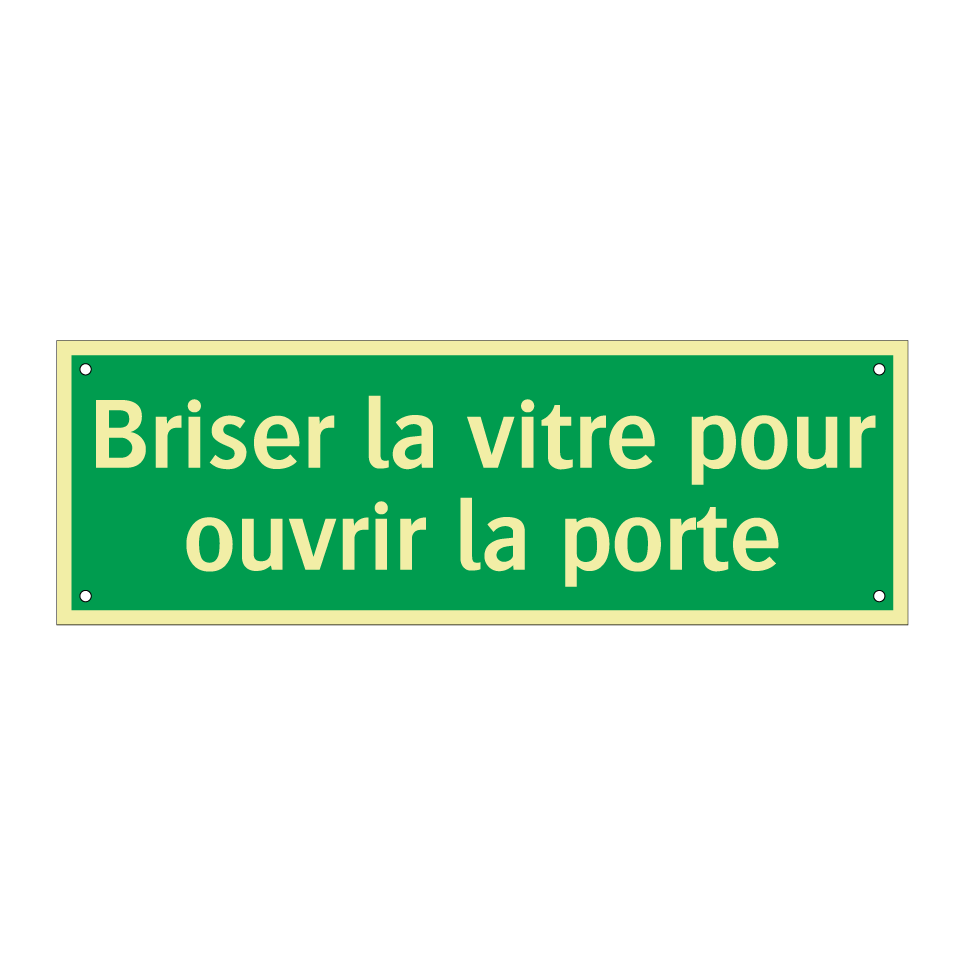 Panneau de secours avec le texte Briser la vitre pour ouvrir la porte