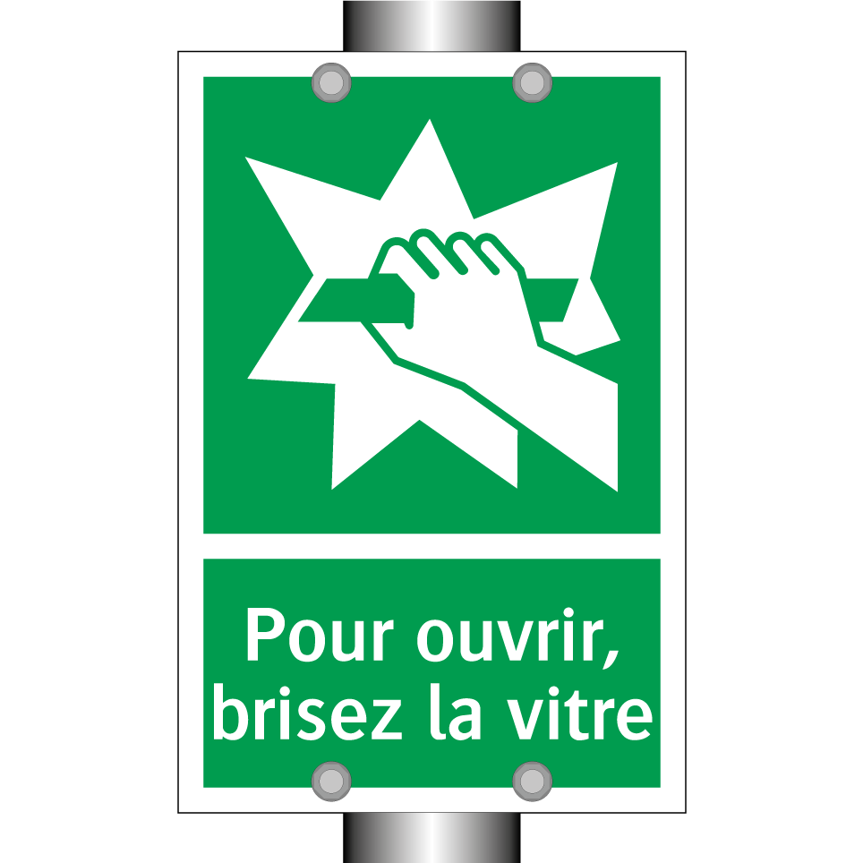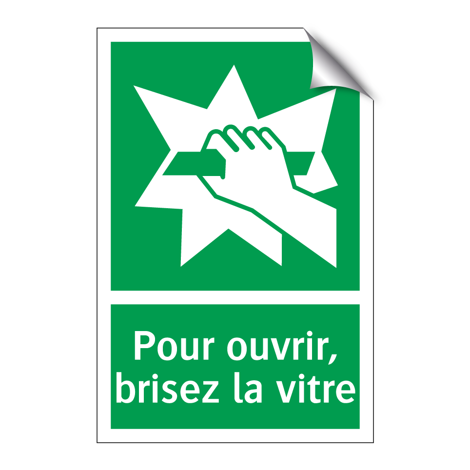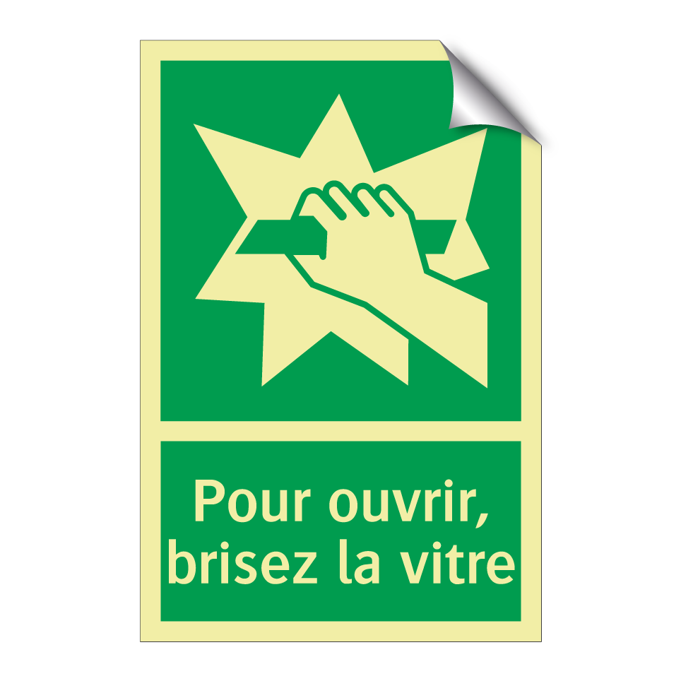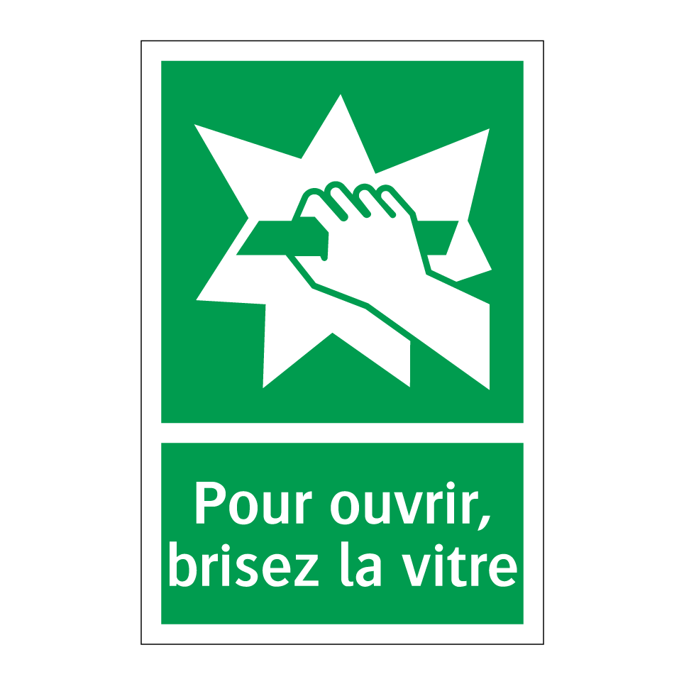Panneau de secours avec le texte Pour ouvrir, brisez la vitre et une symbolique claire