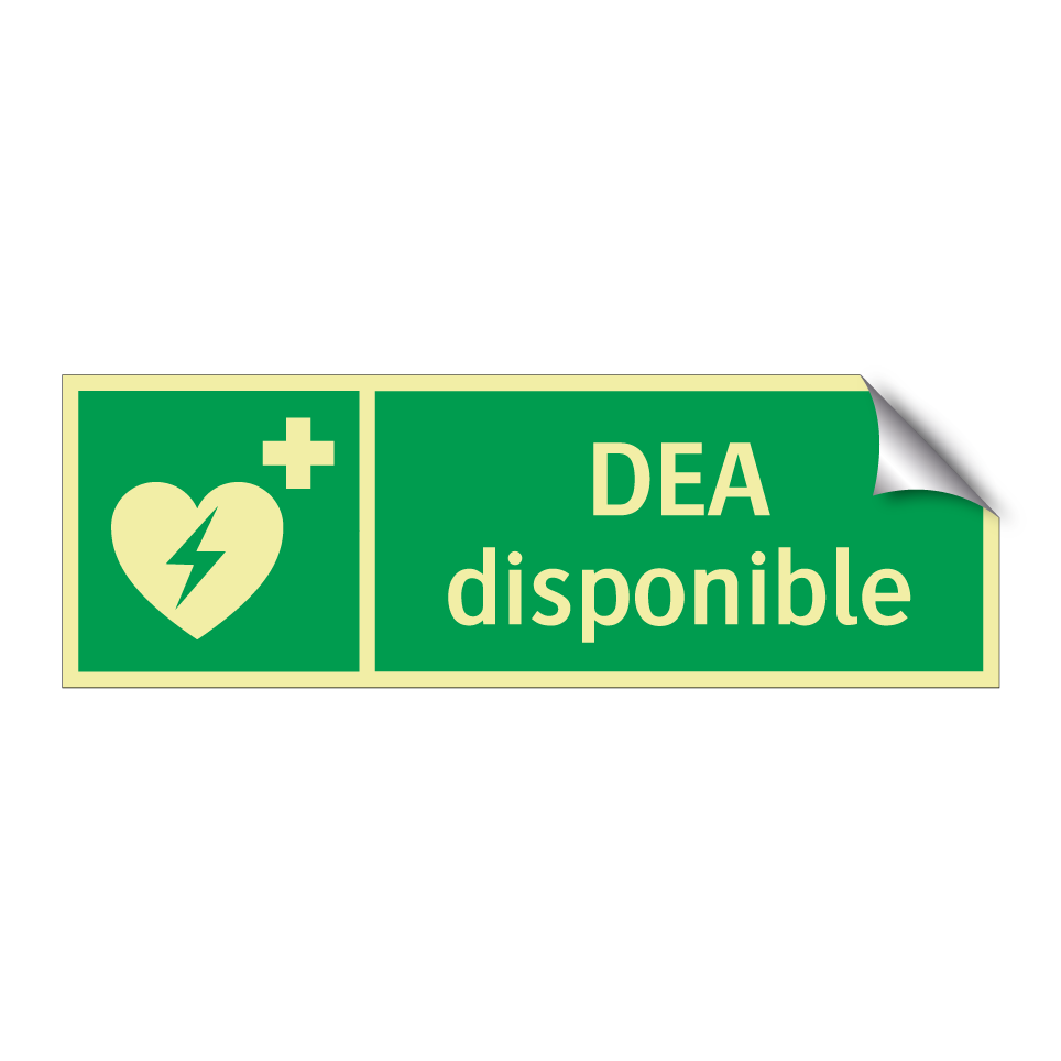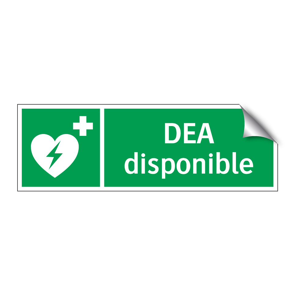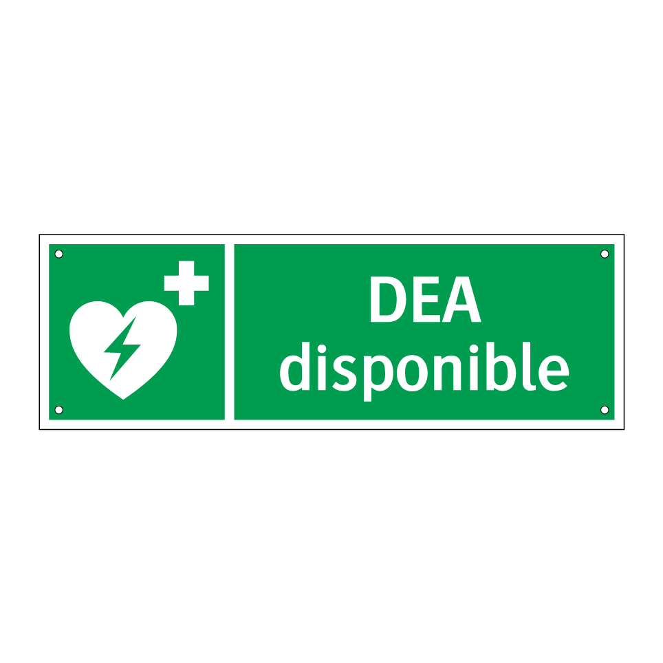Panneau de secours avec le texte DEA disponible et une symbolique claire