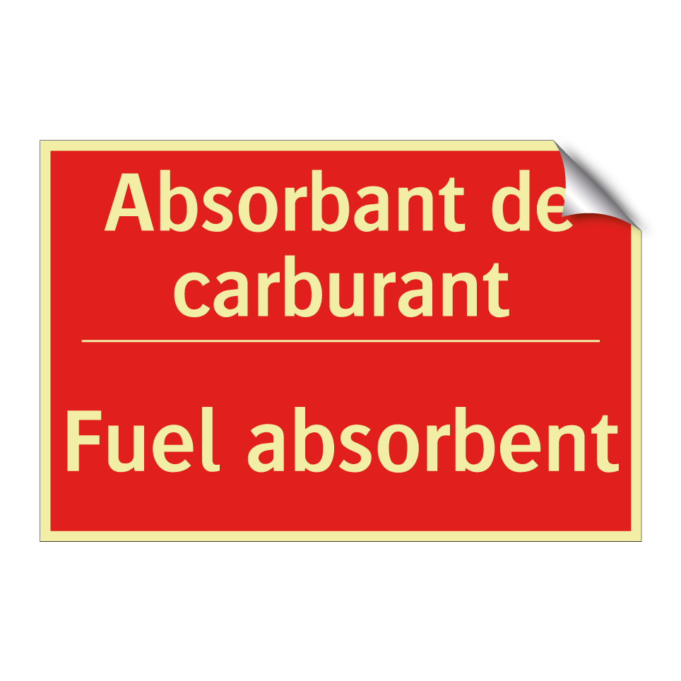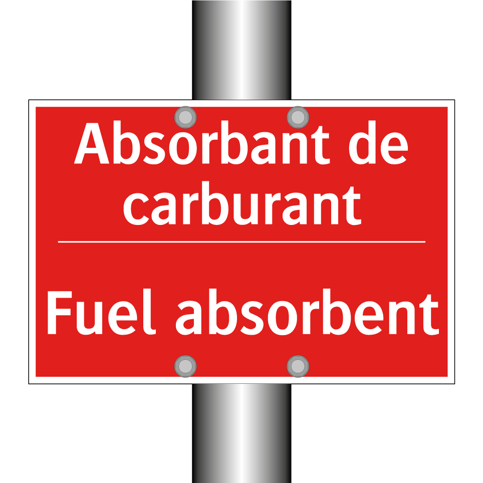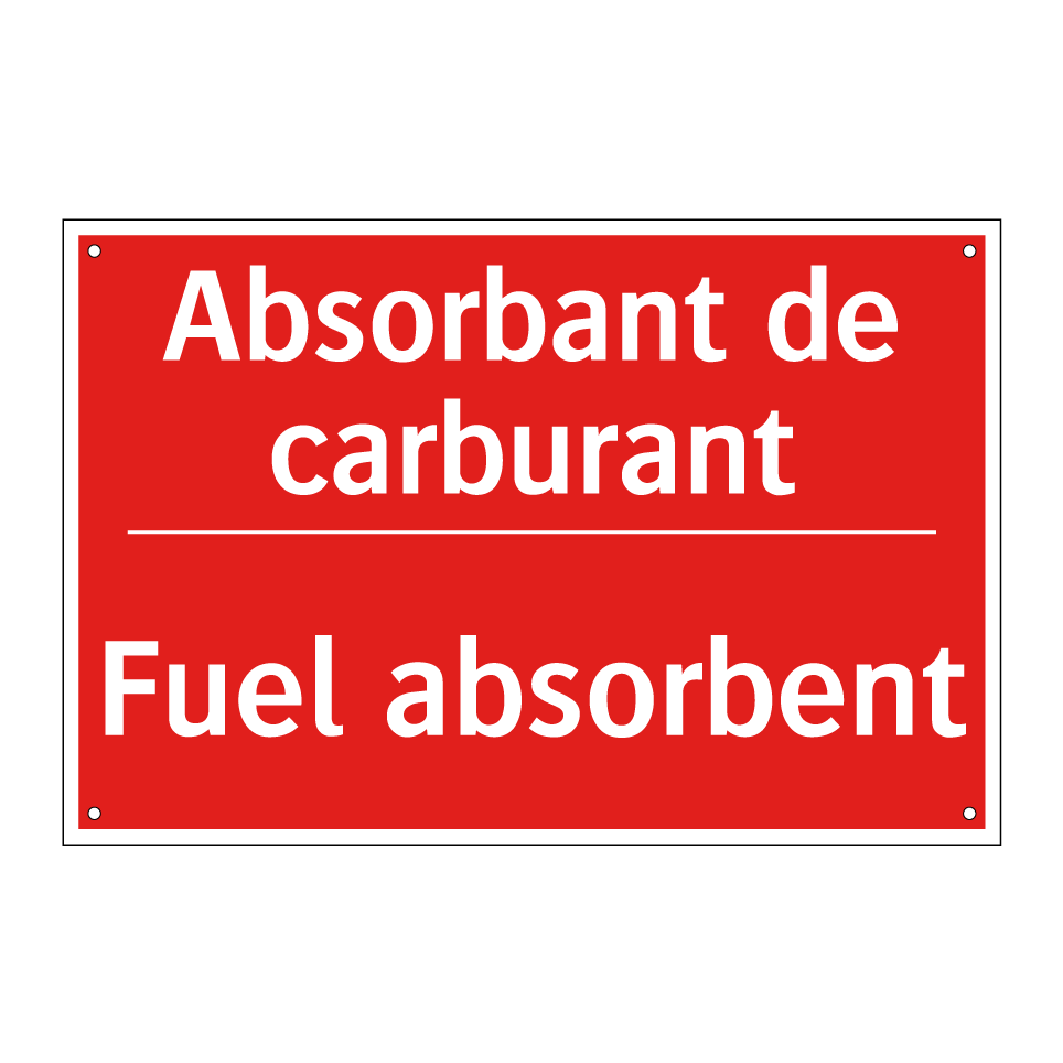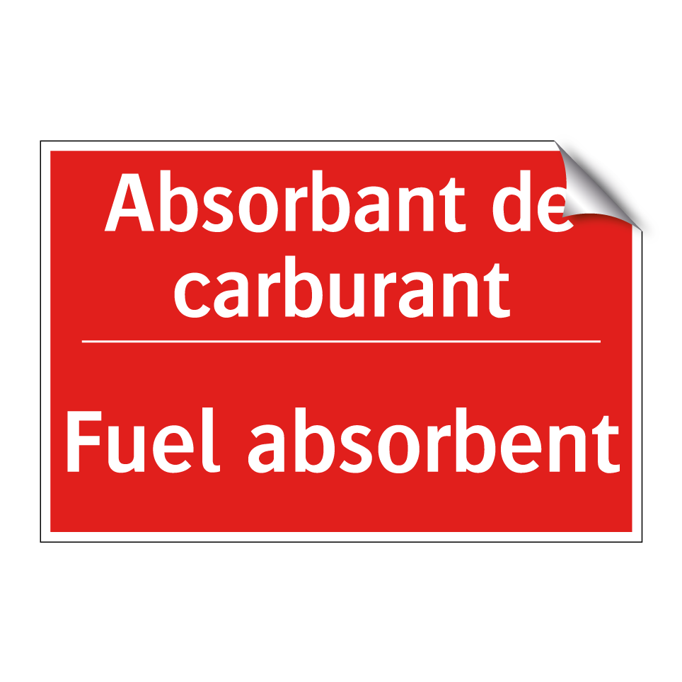 Panneau de signalisation incendie bilingue avec texte en français : "Absorbant de carburant", et en anglais : "Fuel absorbent"