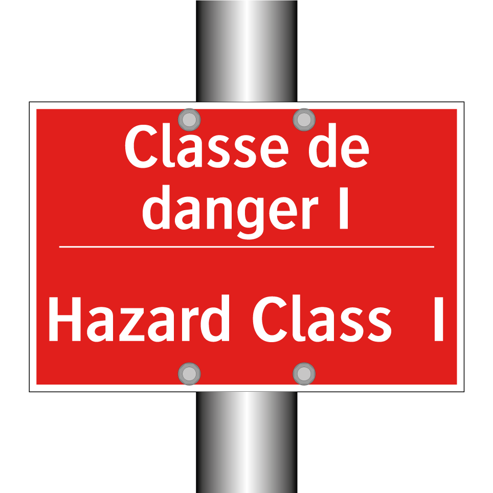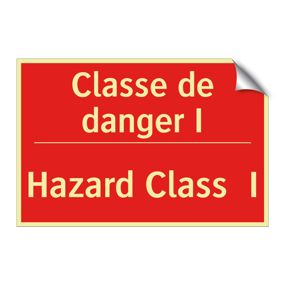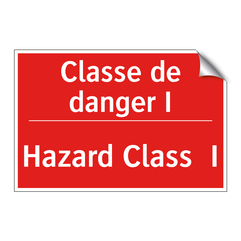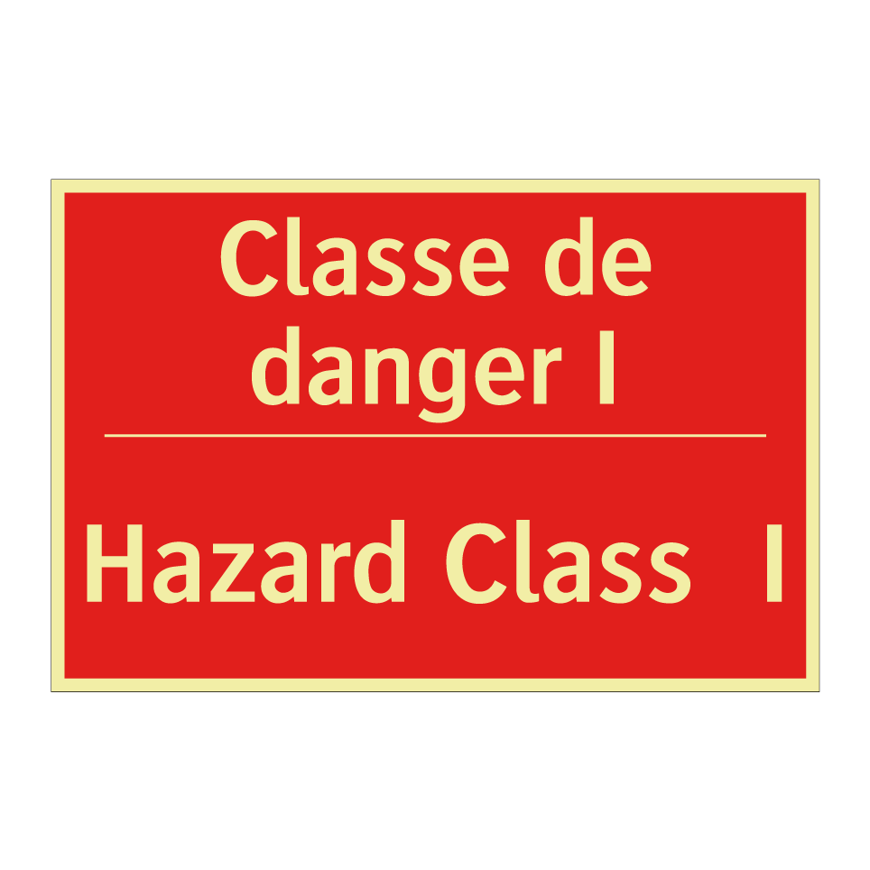 Panneau de signalisation incendie bilingue avec texte en français : "Classe de danger I", et en anglais : "Hazard Class I"