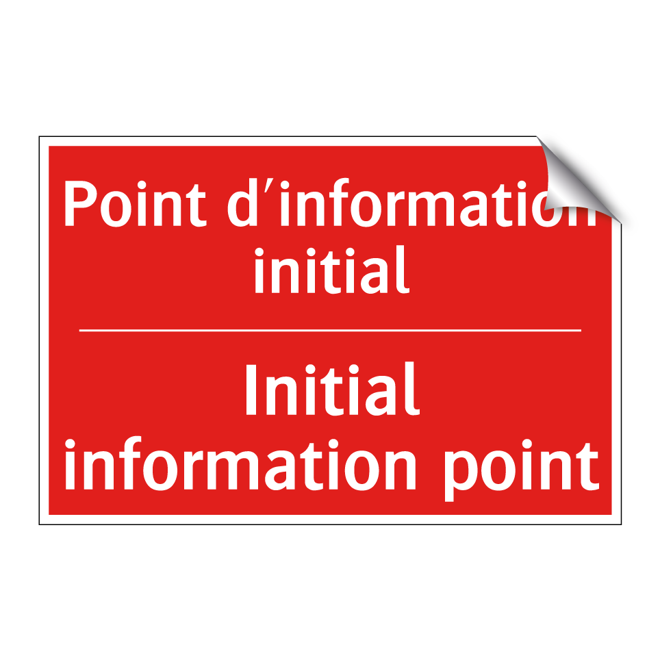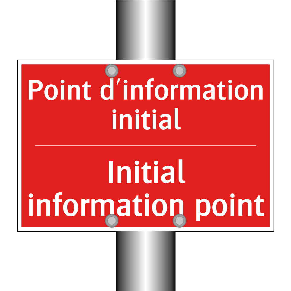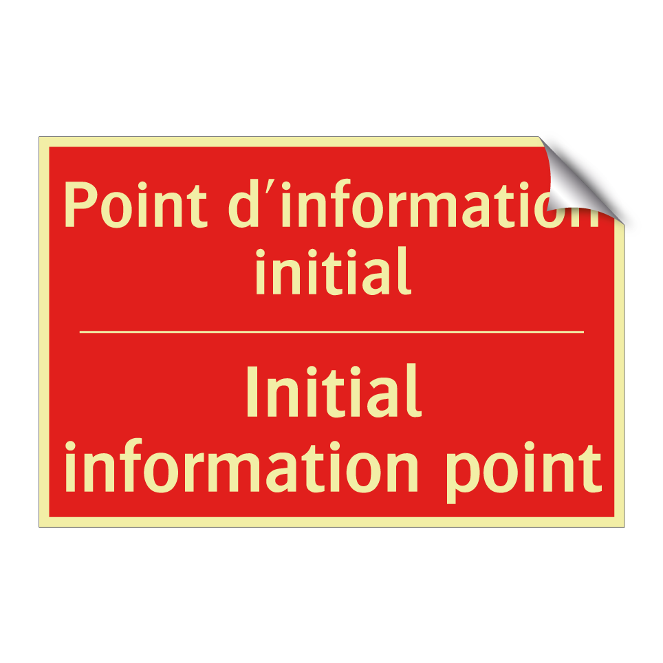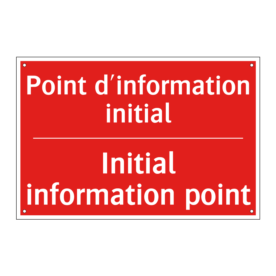 Panneau de signalisation incendie bilingue avec texte en français : "Point d'information initial", et en anglais : "Initial information point"