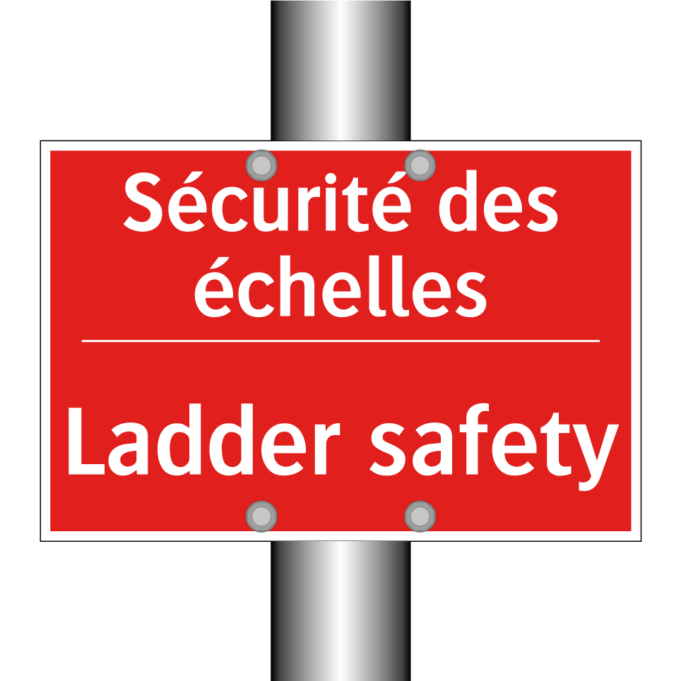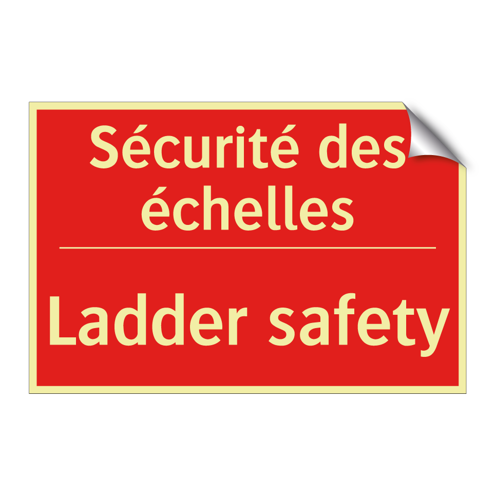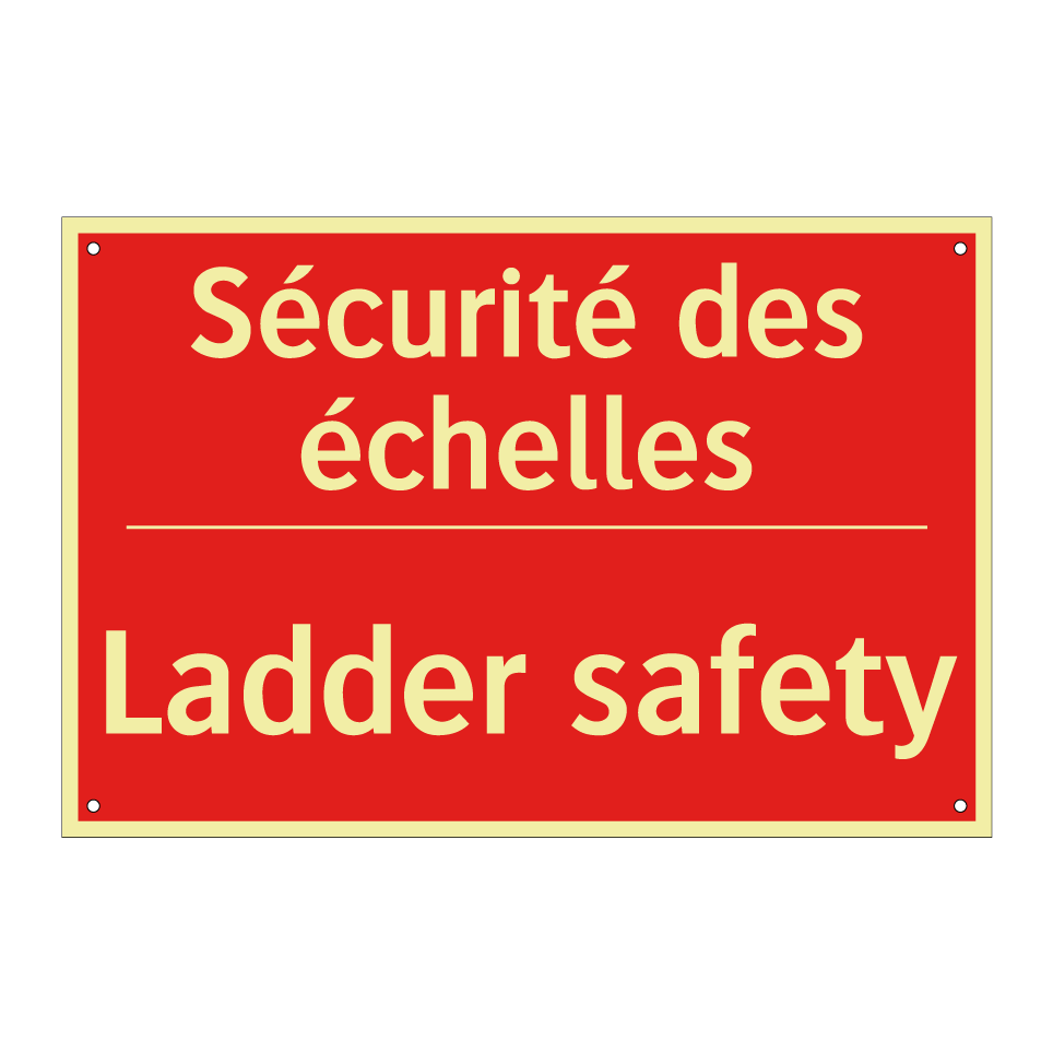 Panneau de signalisation incendie bilingue avec texte en français : "Sécurité des échelles", et en anglais : "Ladder safety"