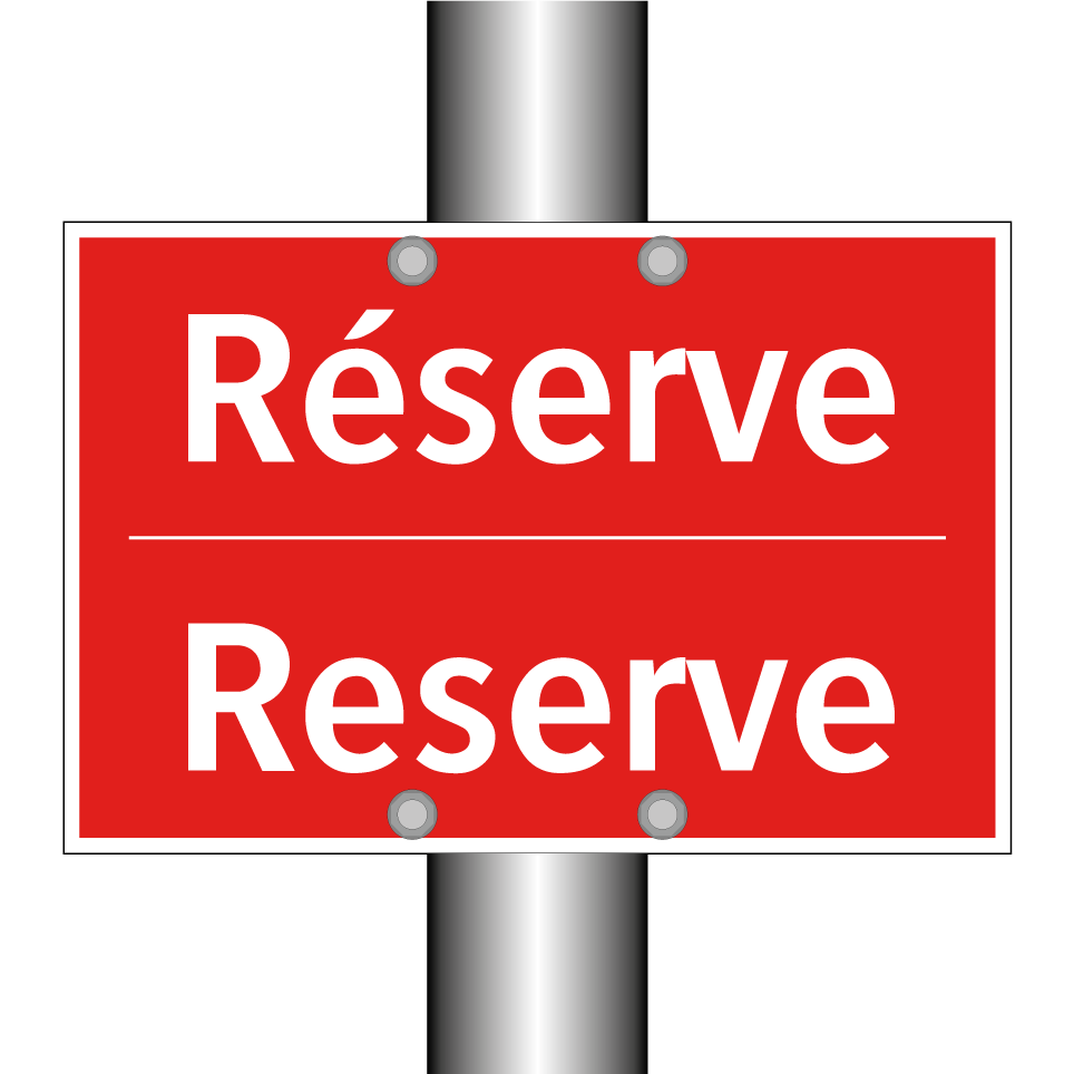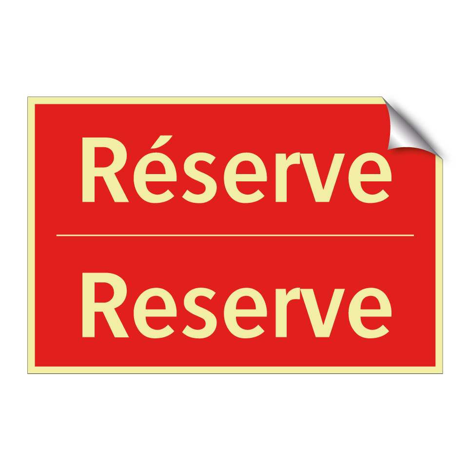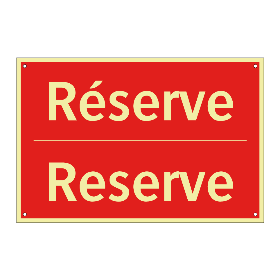Panneau de signalisation incendie bilingue avec texte en français : "Réserve", et en anglais : "Reserve"