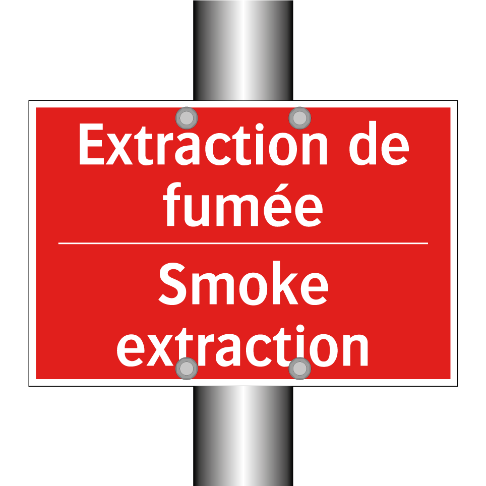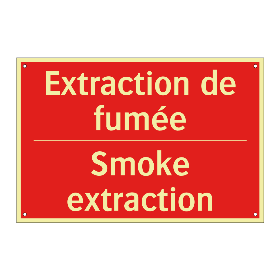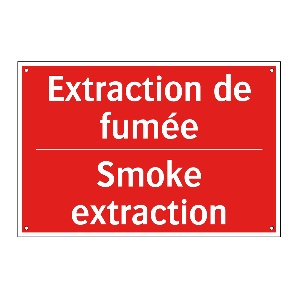 Panneau de signalisation incendie bilingue avec texte en français : "Extraction de fumée", et en anglais : "Smoke extraction"