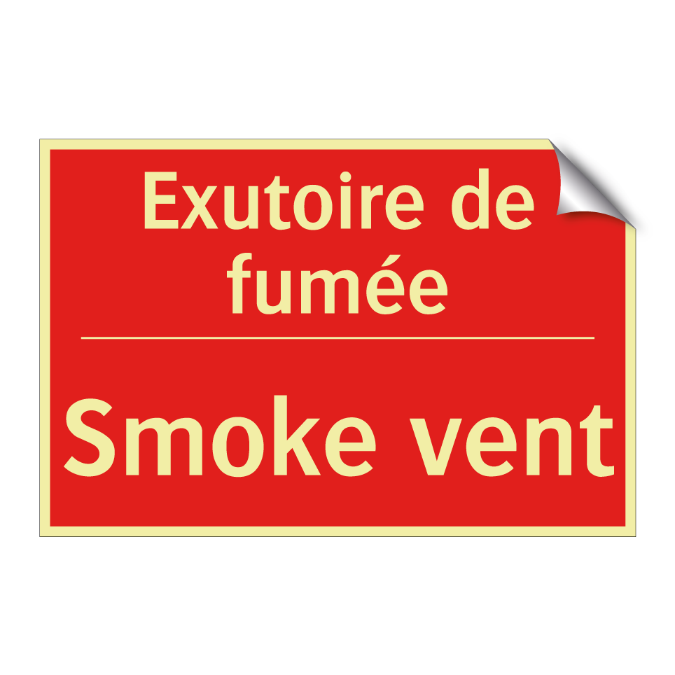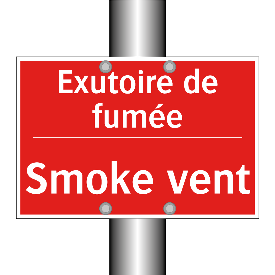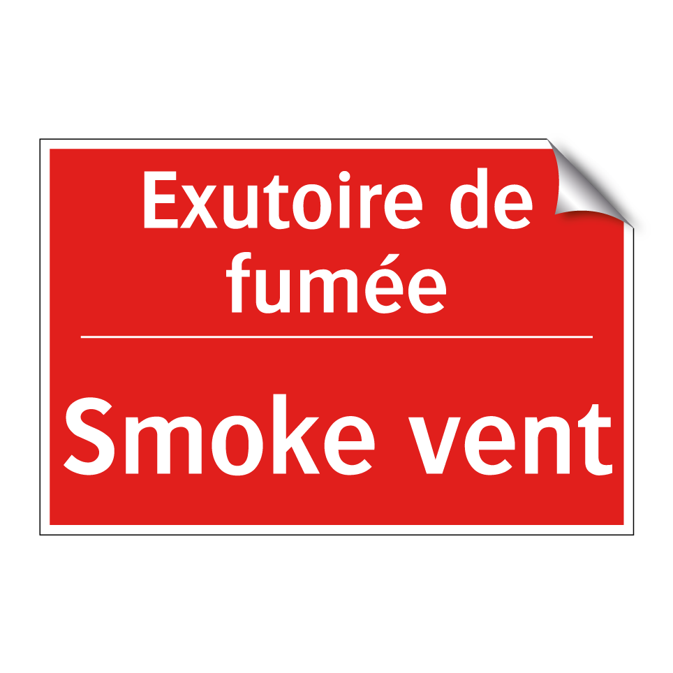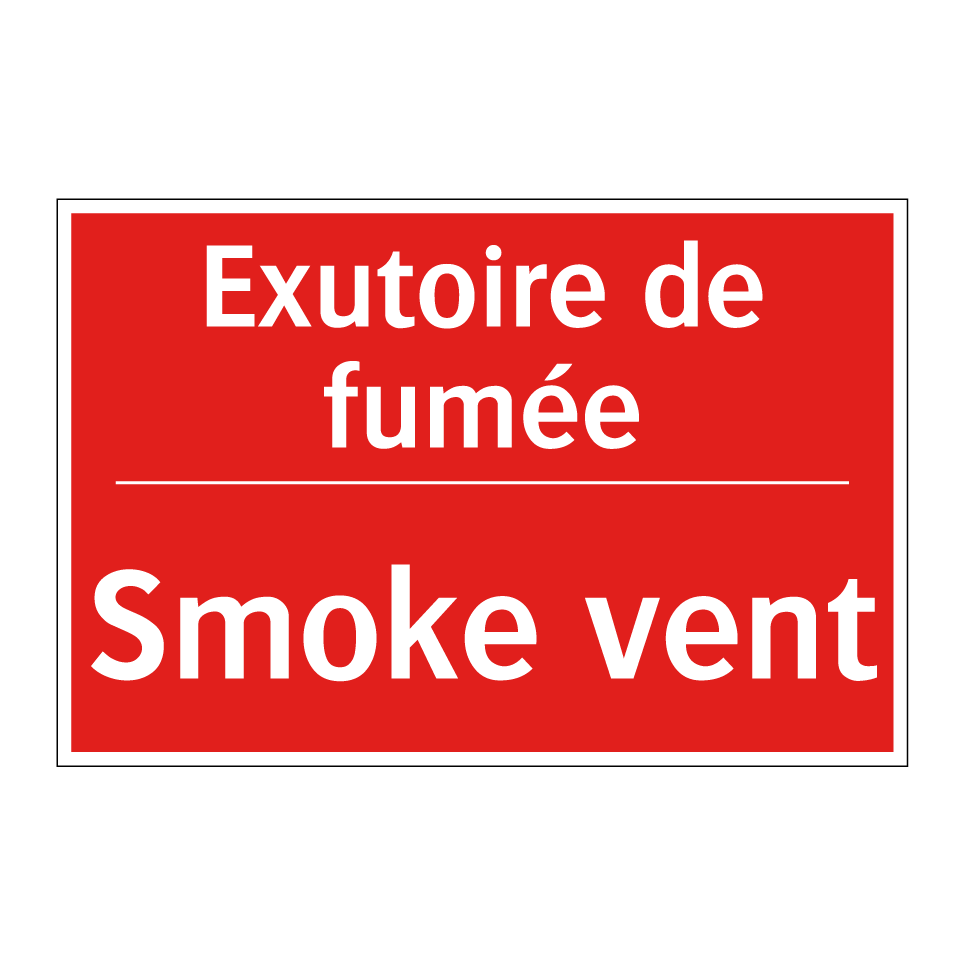 Panneau de signalisation incendie bilingue avec texte en français : "Exutoire de fumée", et en anglais : "Smoke vent"