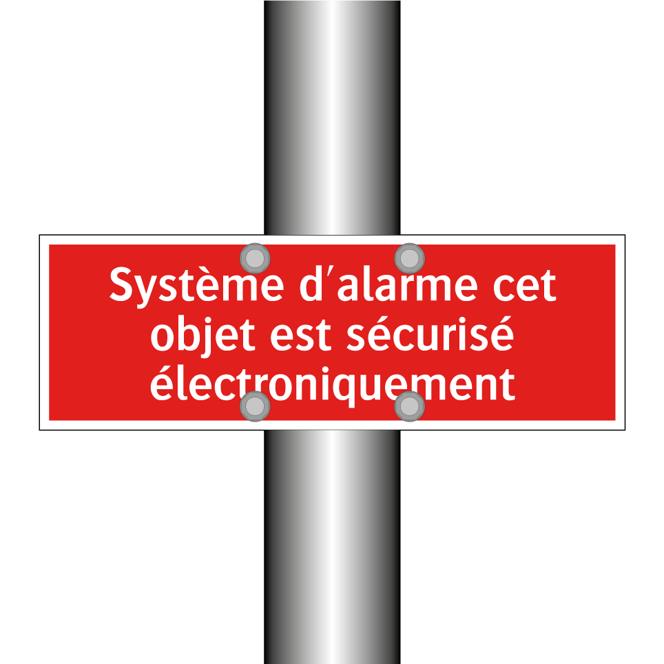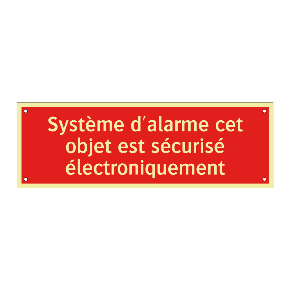 Panneau de signalisation incendie avec le texte Système d'alarme cet objet est sécurisé électroniquement