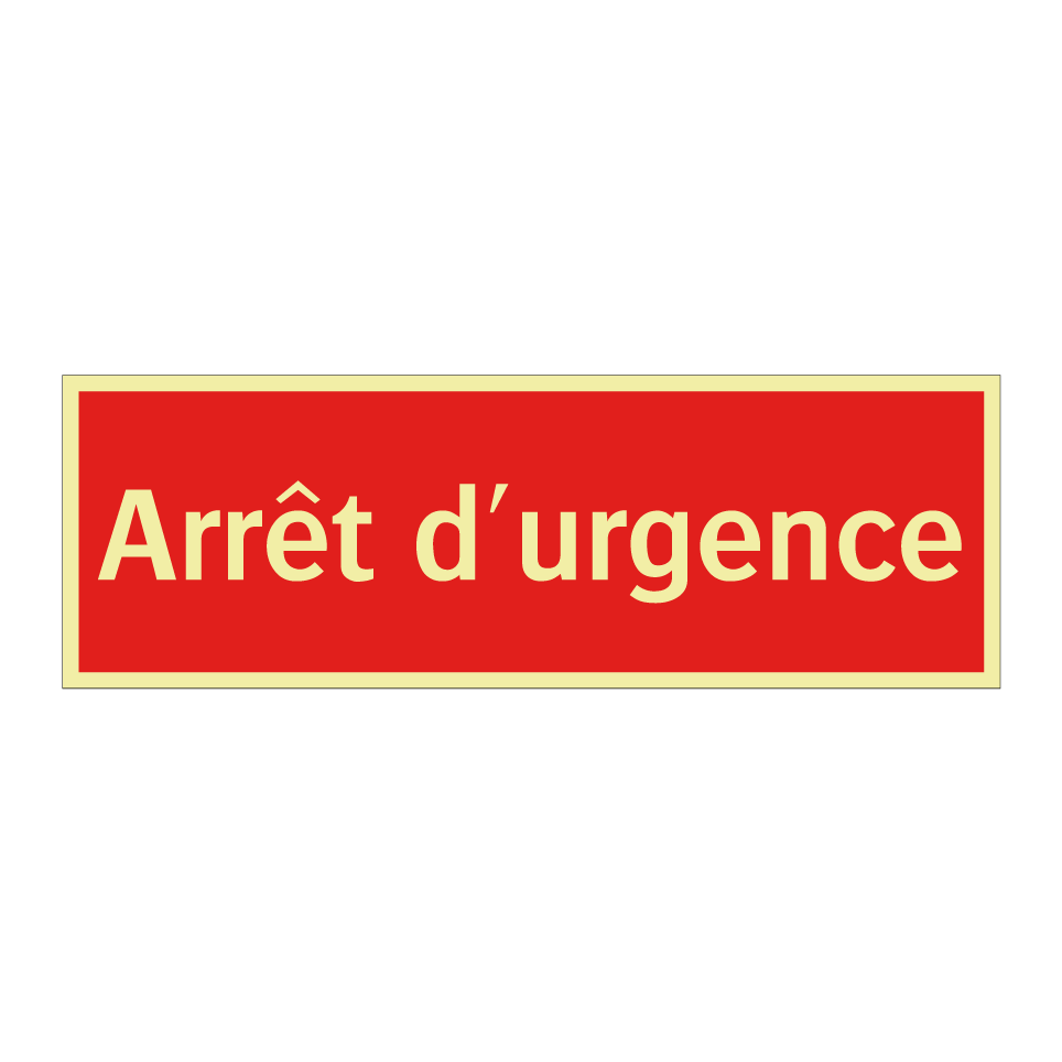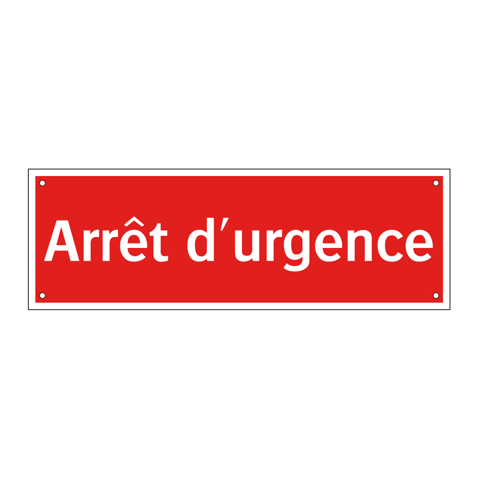 Panneau de signalisation incendie avec le texte Arrêt d'urgence
