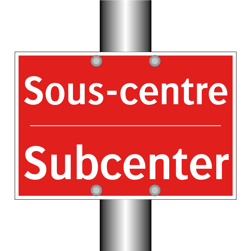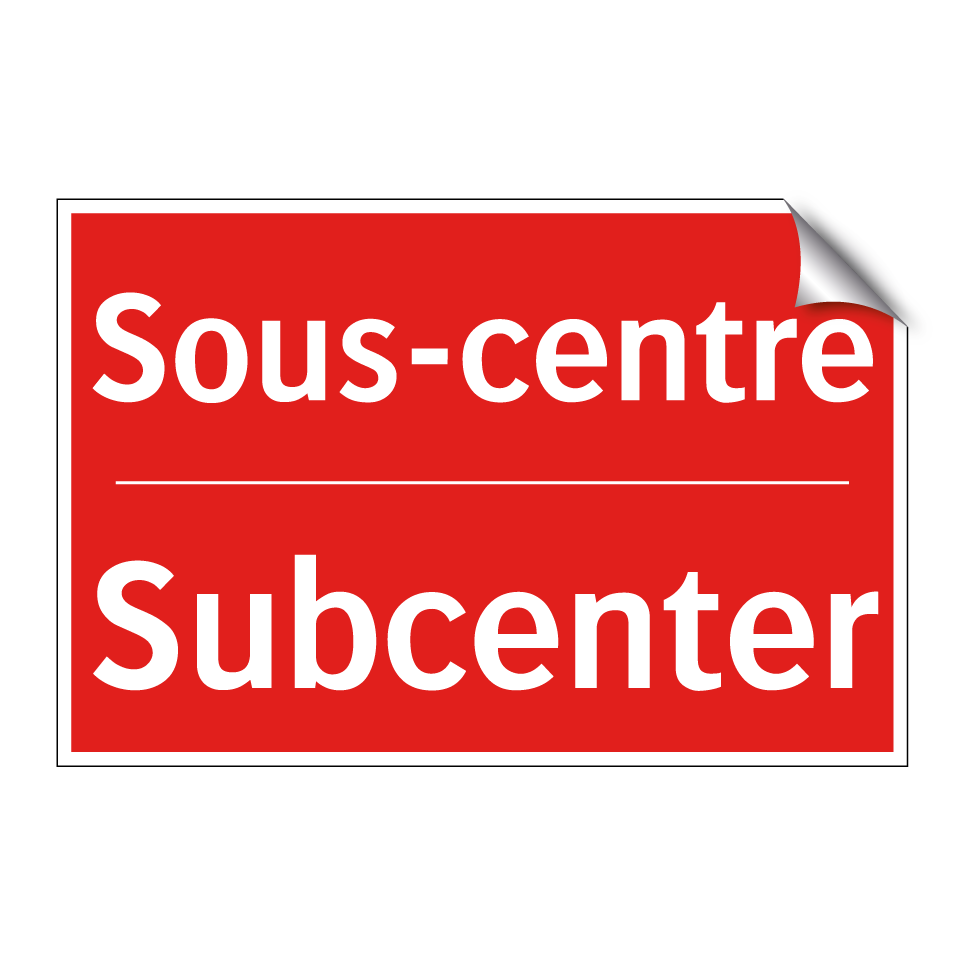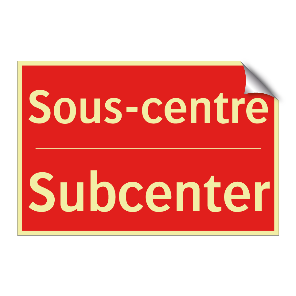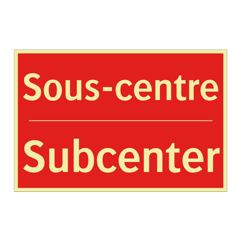 Panneau de signalisation incendie bilingue avec texte en français : "Sous-centre", et en anglais : "Subcenter"