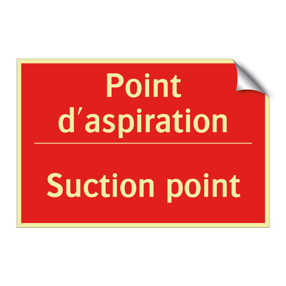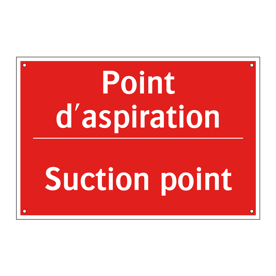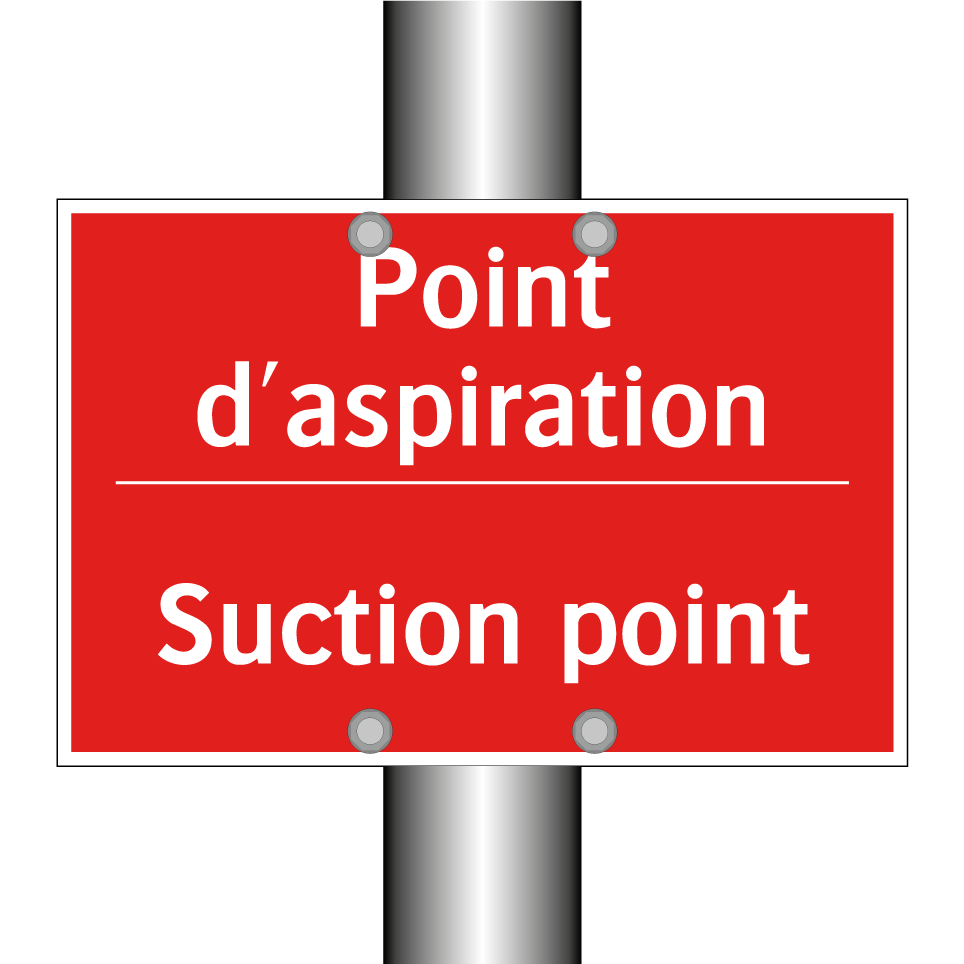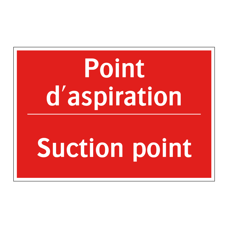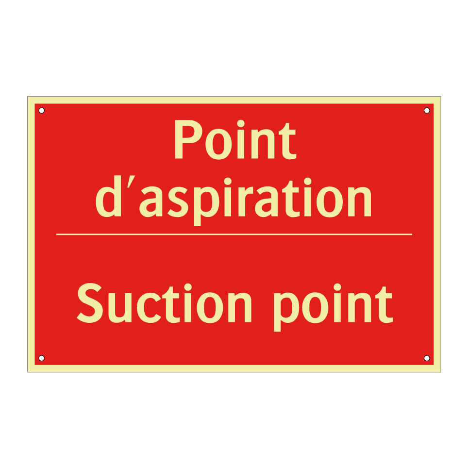 Panneau de signalisation incendie bilingue avec texte en français : "Point d'aspiration", et en anglais : "Suction point"