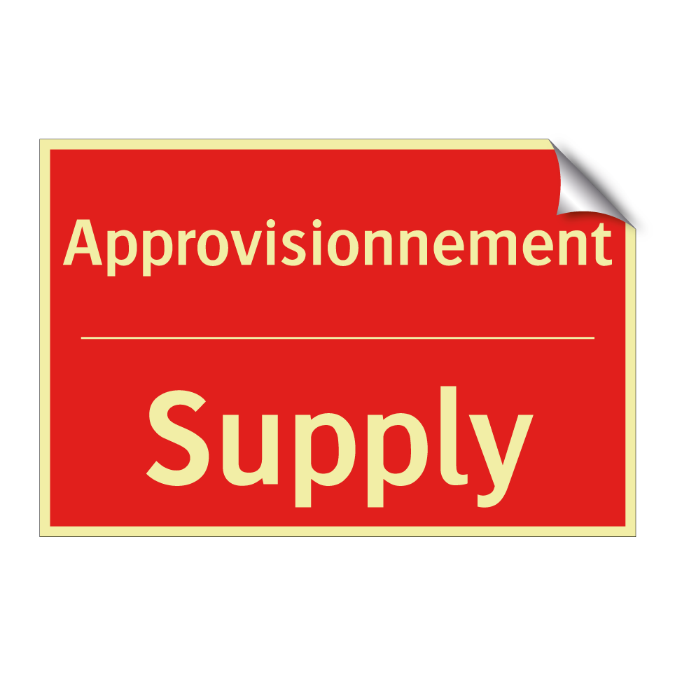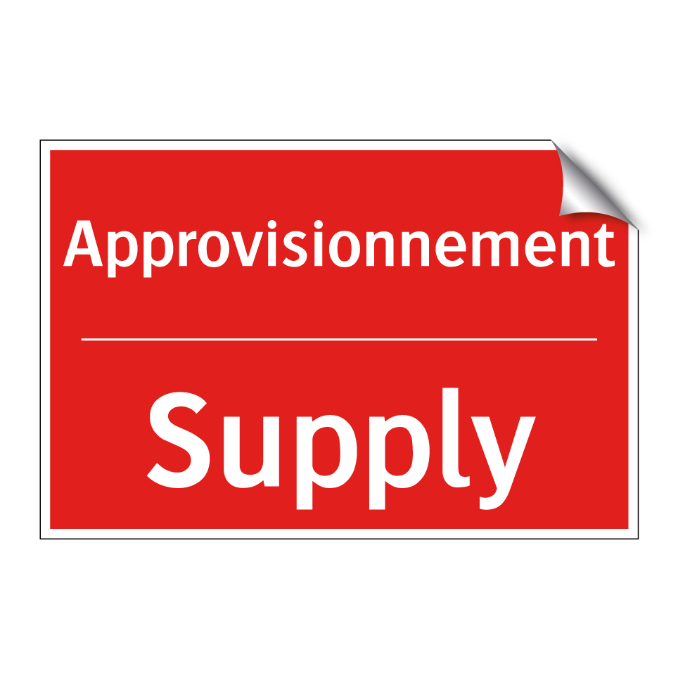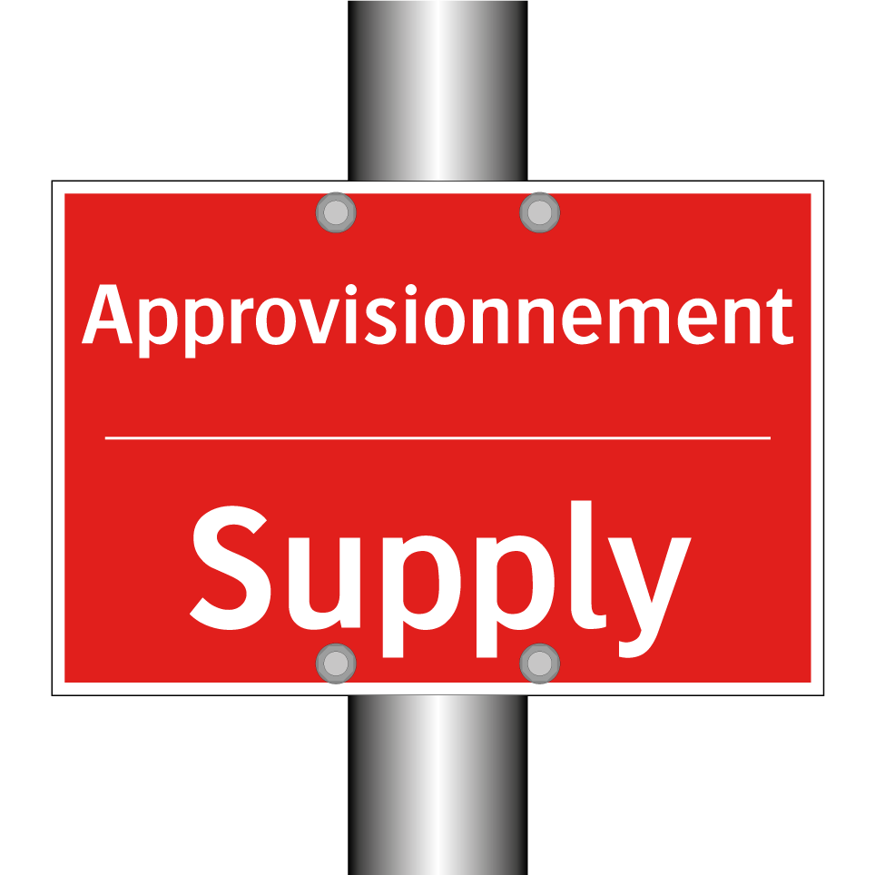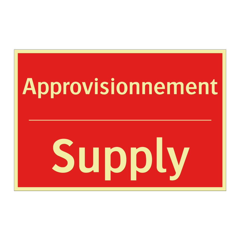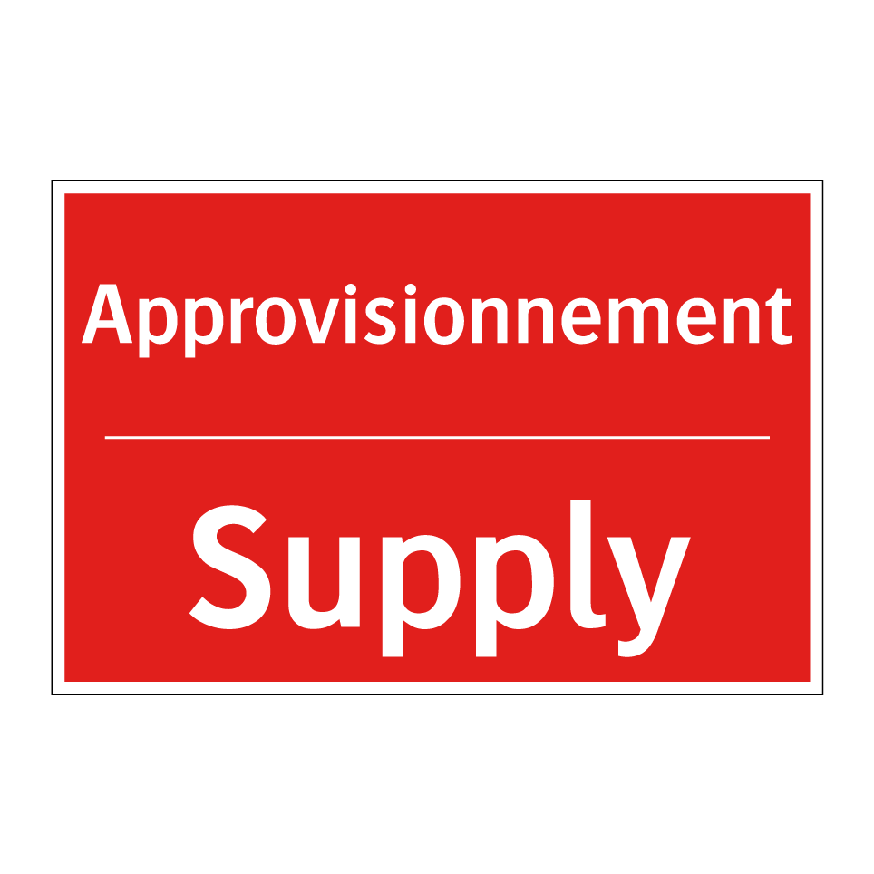 Panneau de signalisation incendie bilingue avec texte en français : "Approvisionnement", et en anglais : "Supply"