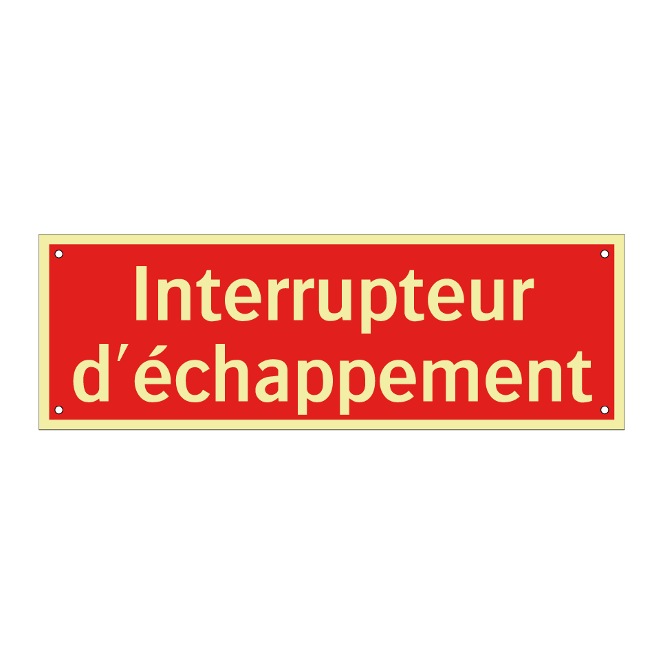 Panneau de signalisation incendie avec le texte Interrupteur d'échappement