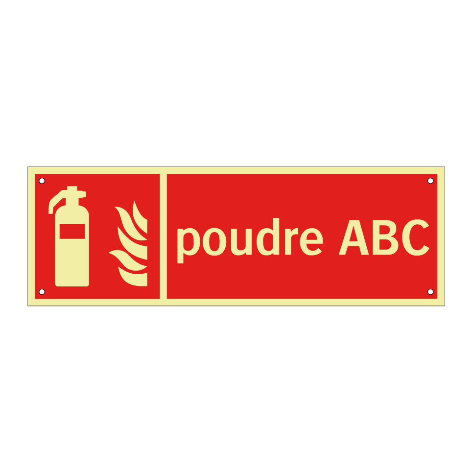 Panneau incendie avec le texte poudre ABC et une symbolique claire
