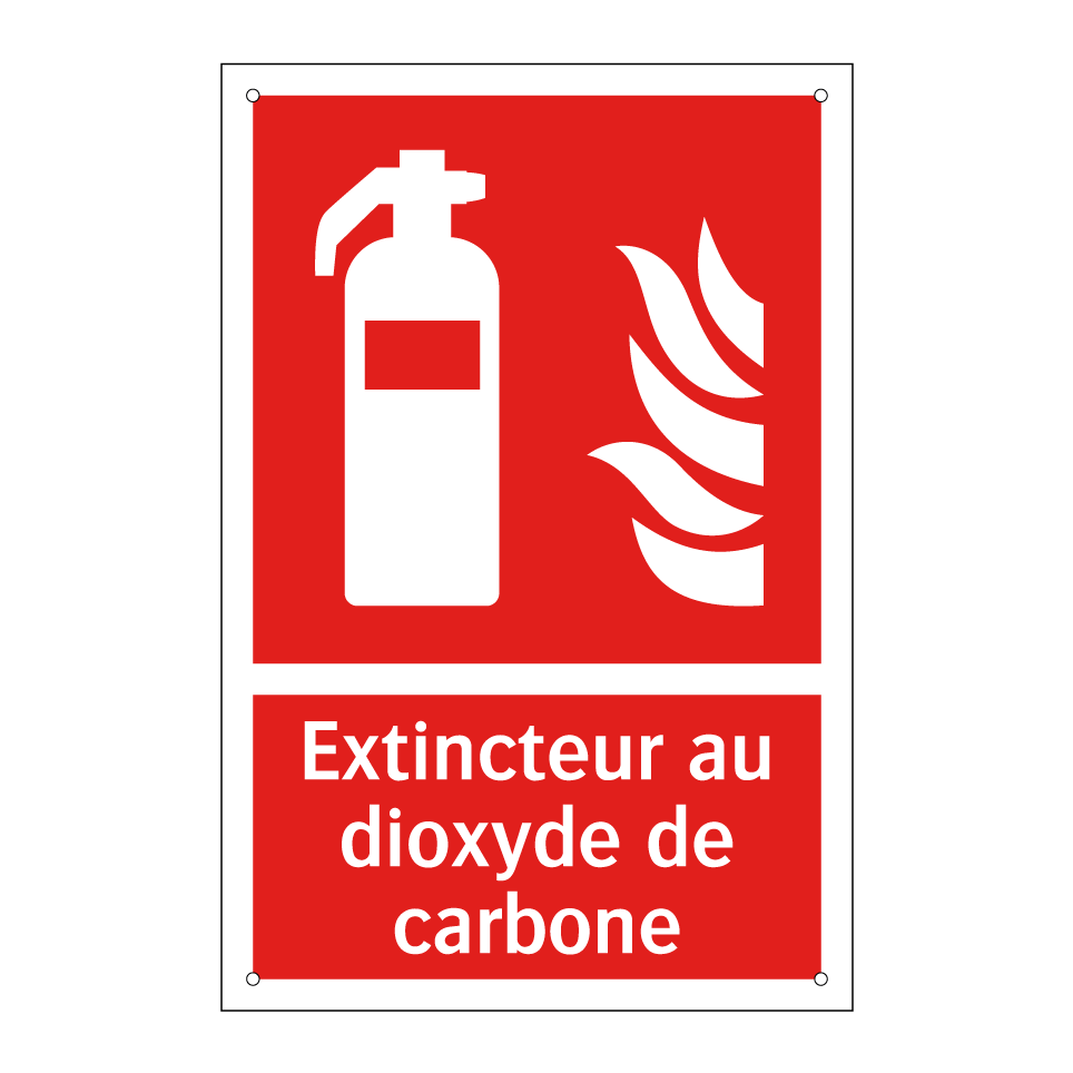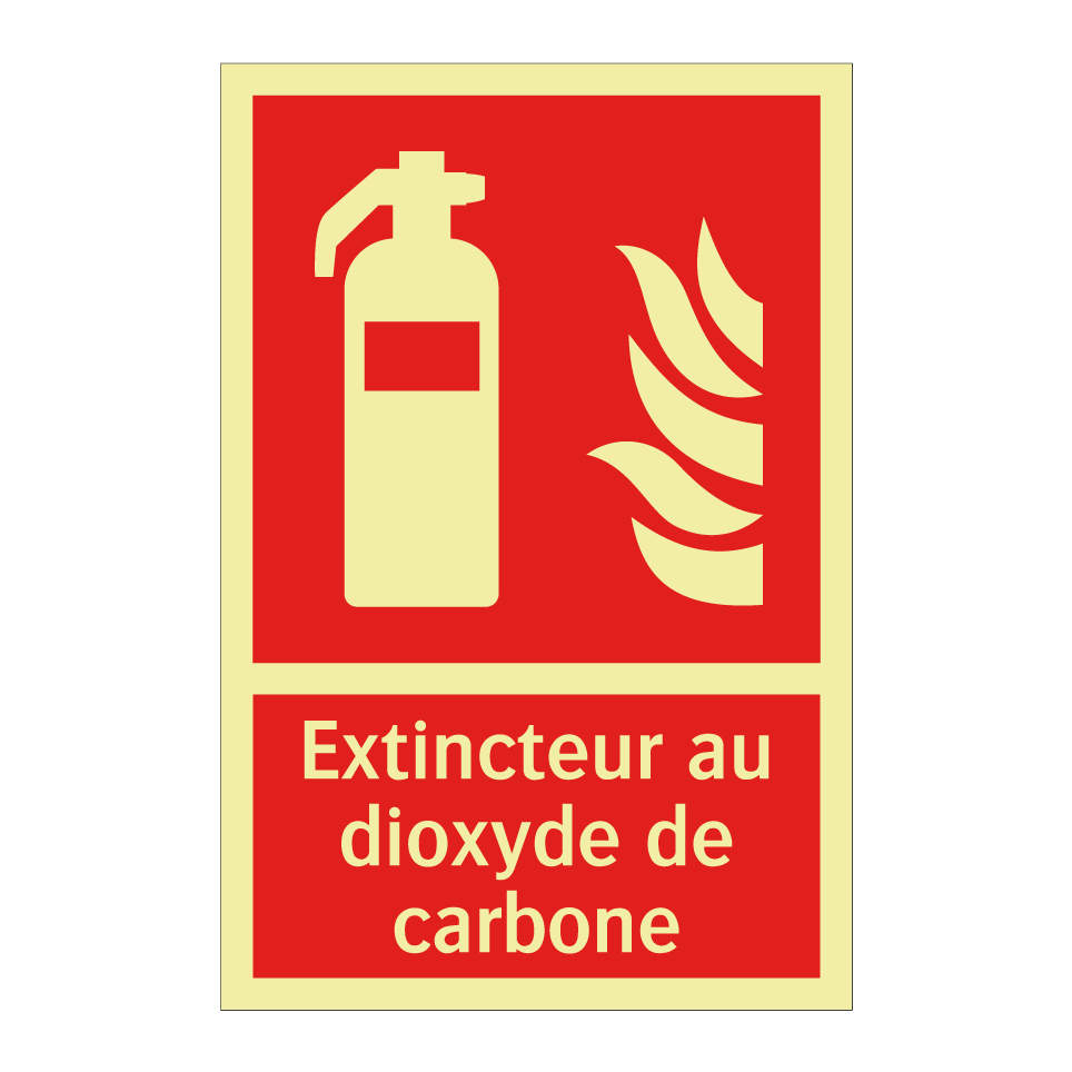 Panneau incendie avec le texte Extincteur au dioxyde de carbone et une symbolique claire