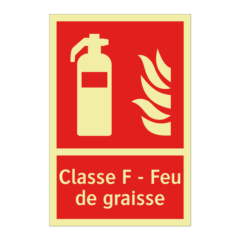 Panneau incendie avec le texte Classe F - Feu de graisse et une symbolique claire