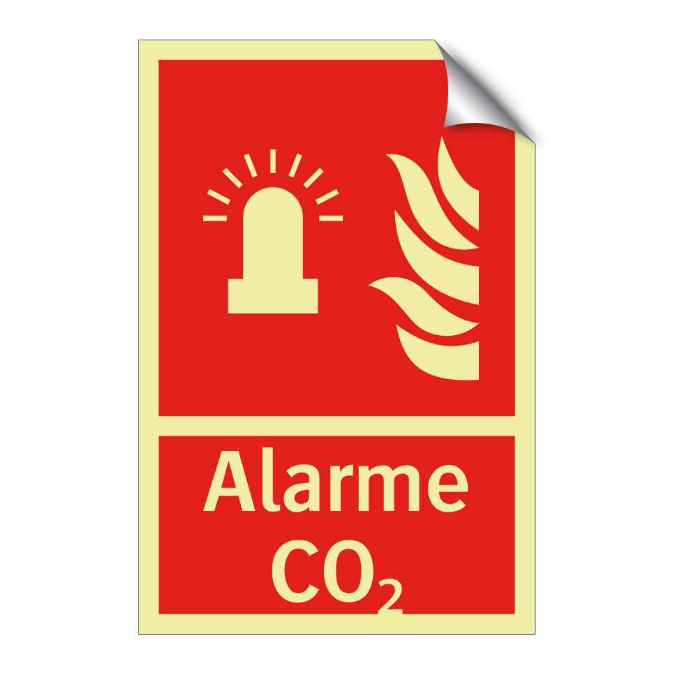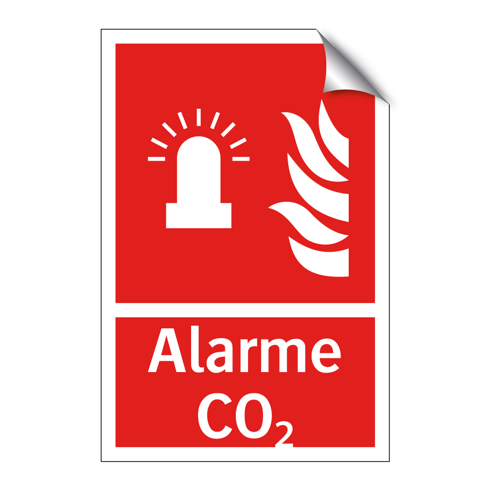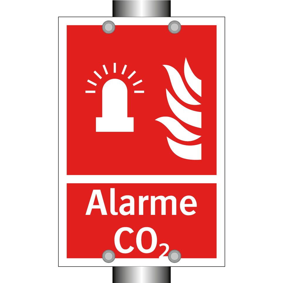 Panneau incendie avec le texte Alarme CO₂ et une symbolique claire