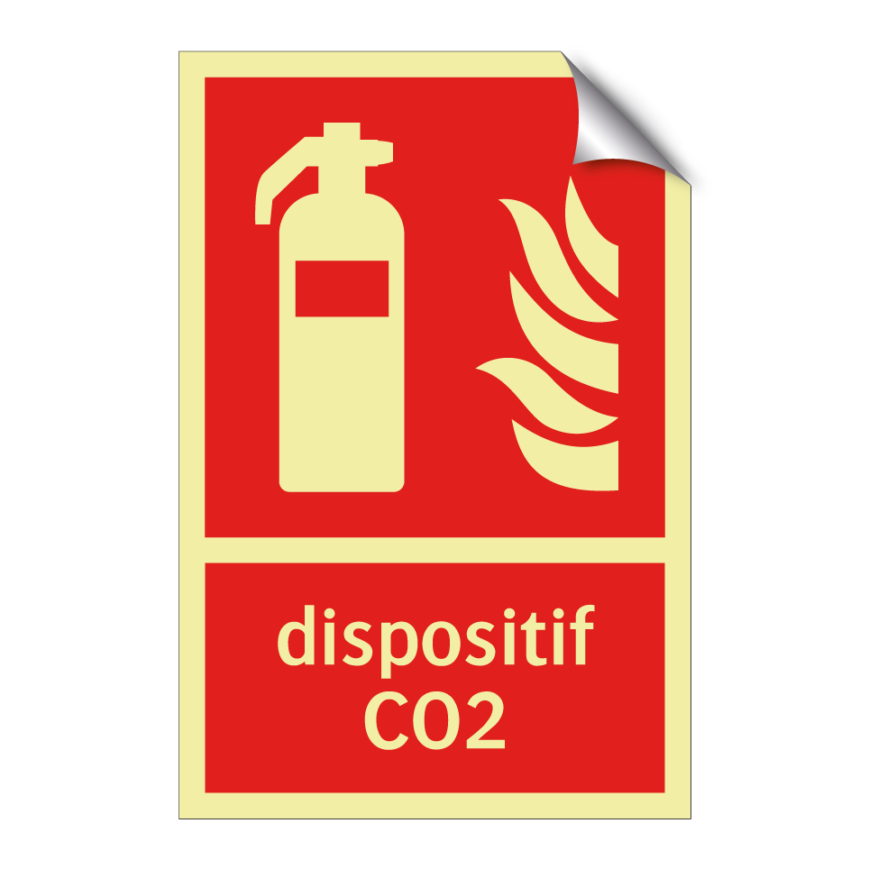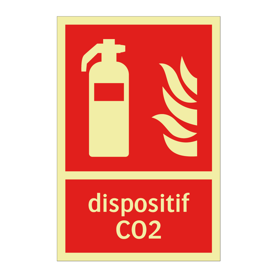 Panneau incendie avec le texte dispositif CO2 et une symbolique claire