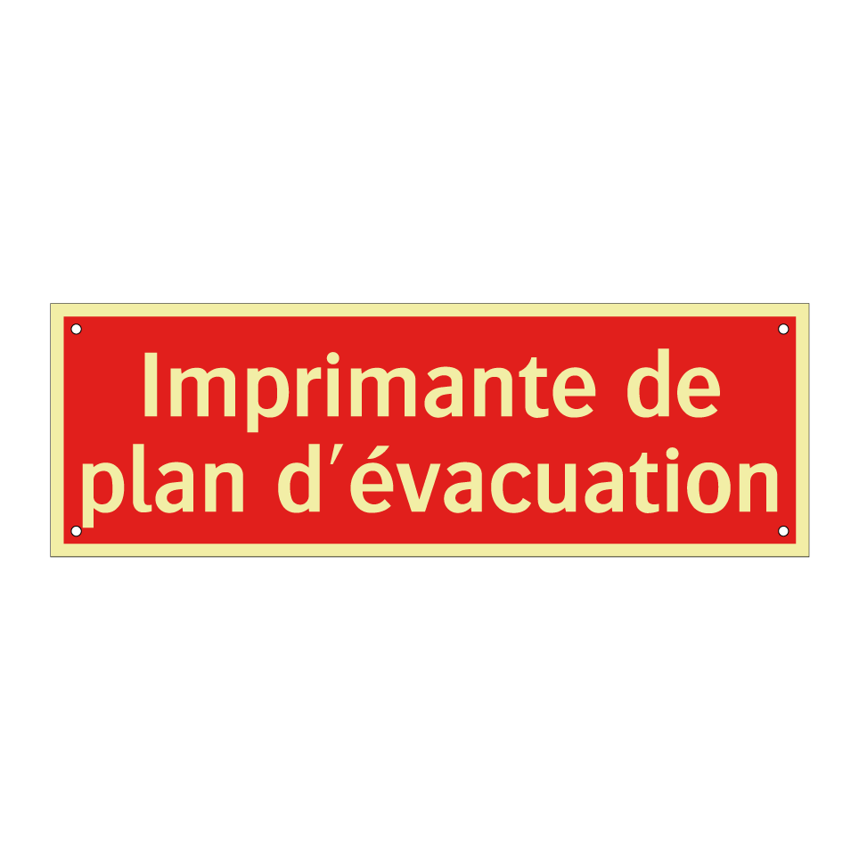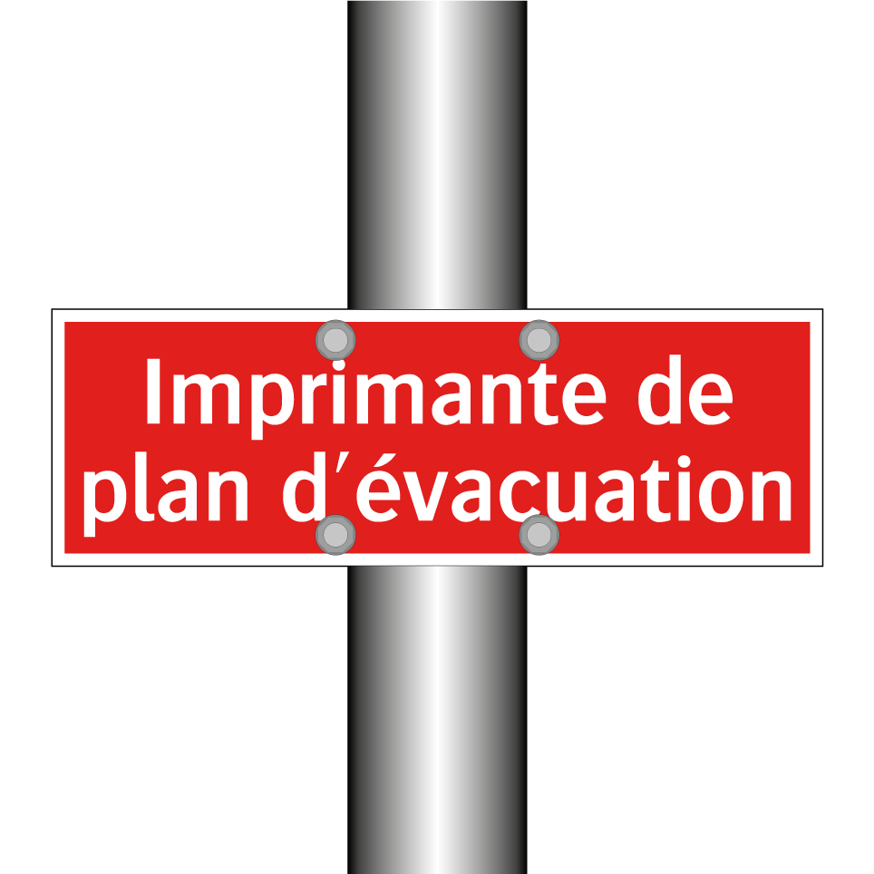 Panneau de signalisation incendie avec le texte Imprimante de plan d'évacuation