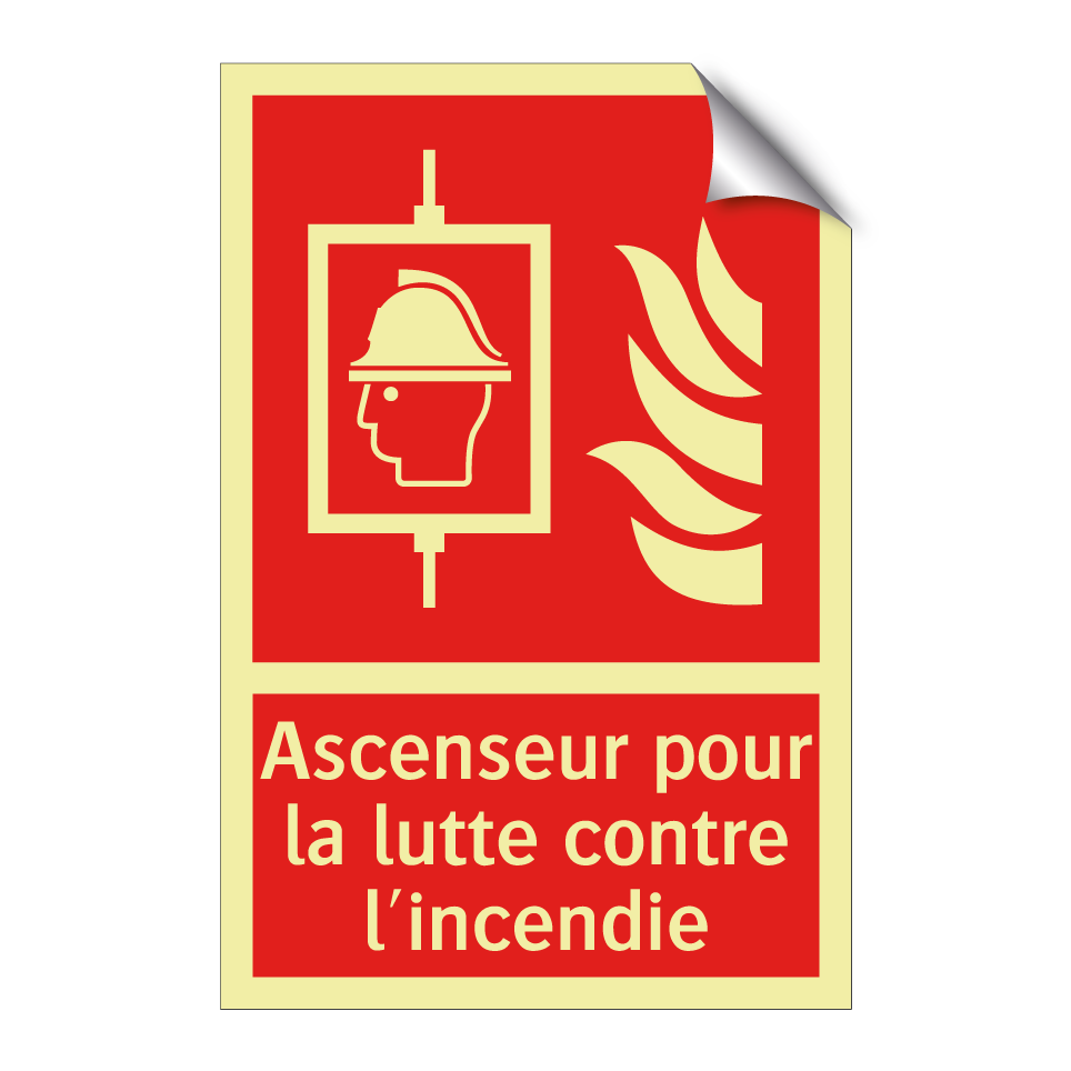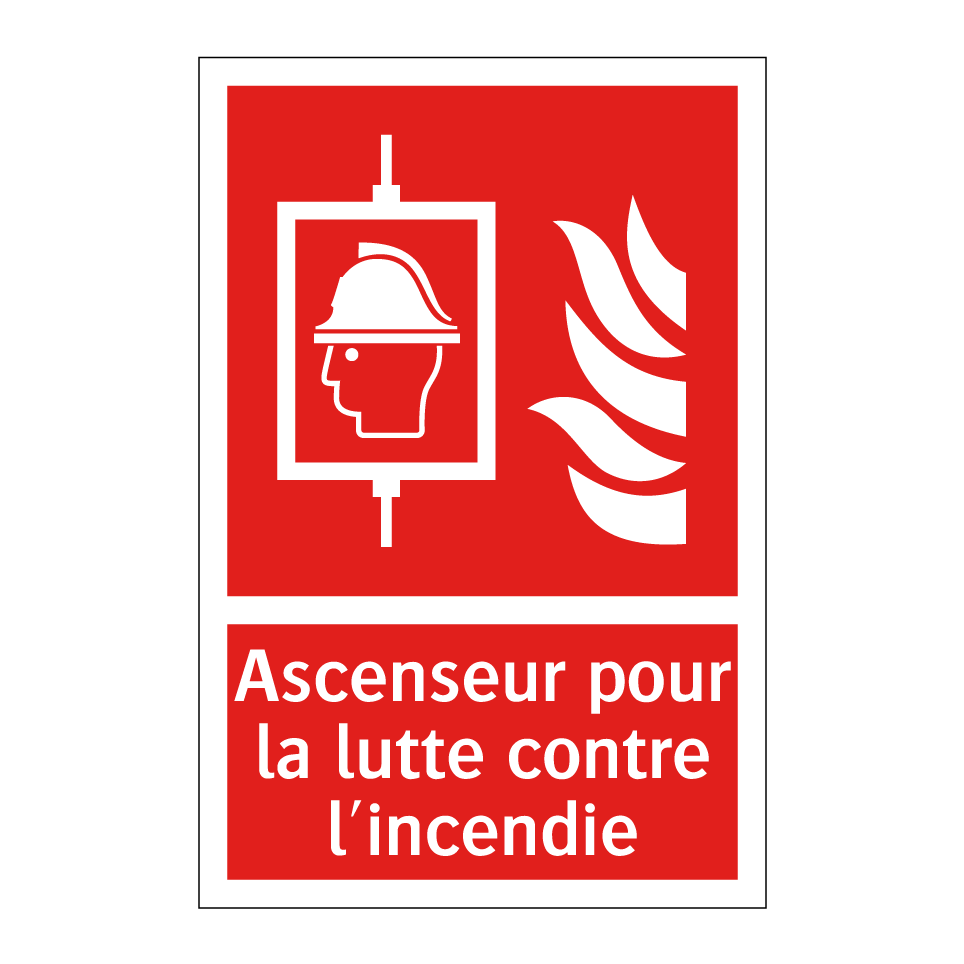 Panneau incendie avec le texte Ascenseur pour la lutte contre l'incendie et une symbolique claire