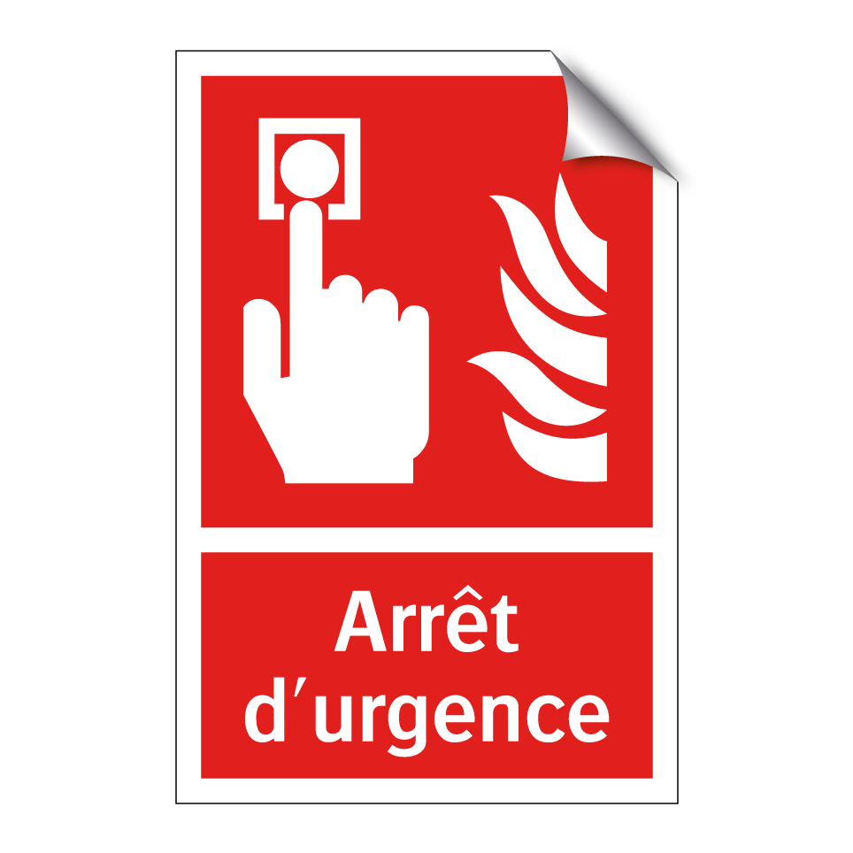 Panneau incendie avec le texte Arrêt d'urgence et une symbolique claire