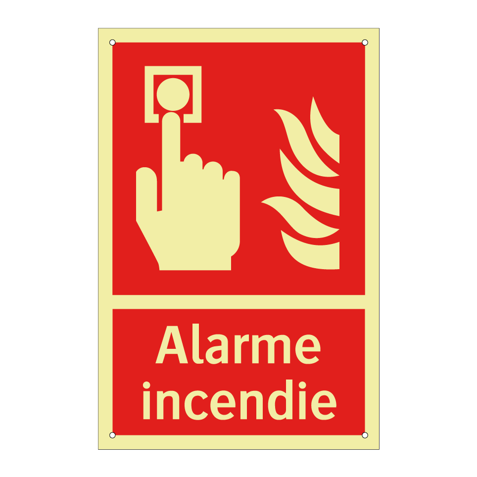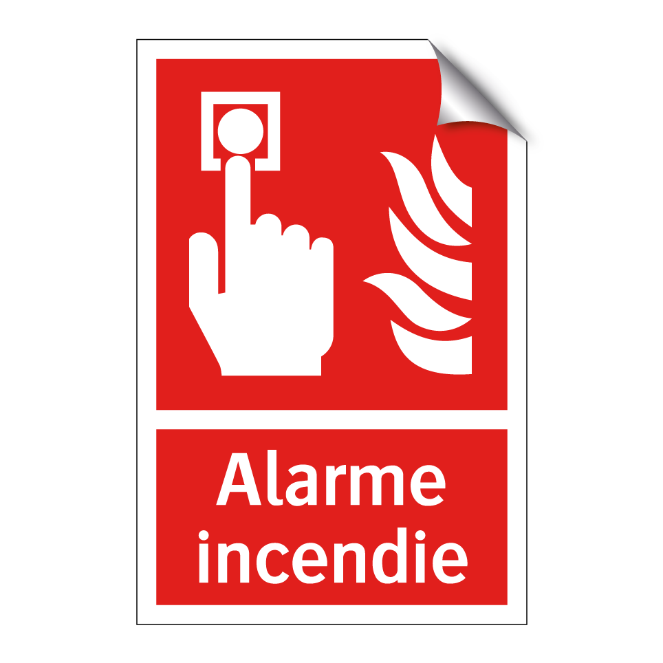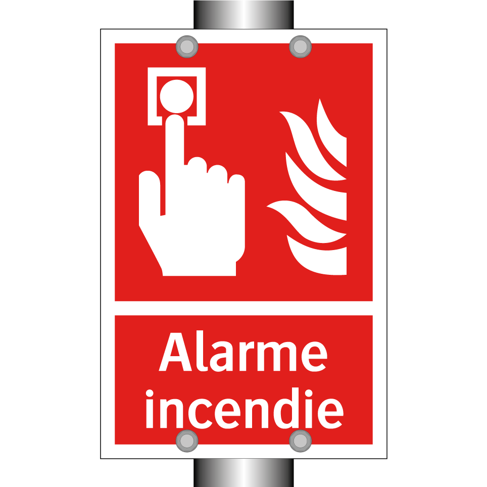 Panneau incendie avec le texte Alarme incendie et une symbolique claire