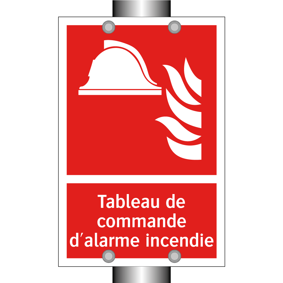 Panneau incendie avec le texte Tableau de commande d'alarme incendie et une symbolique claire